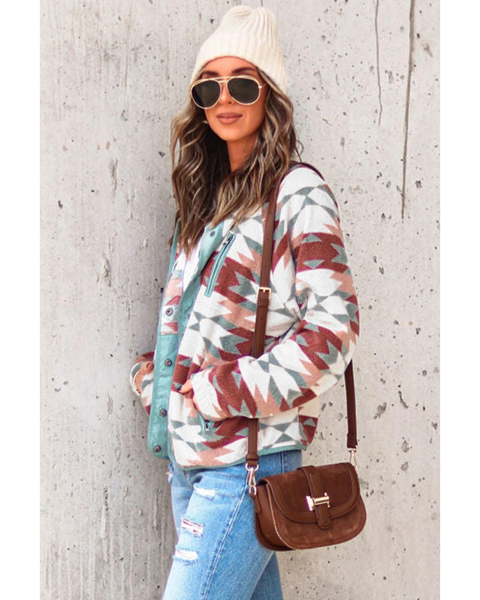 Azura Exchange Red Western Aztec Buttoned Zipper Pockets Fleece Jacket - M Original price was: $72.99.Current price is: $38.99.