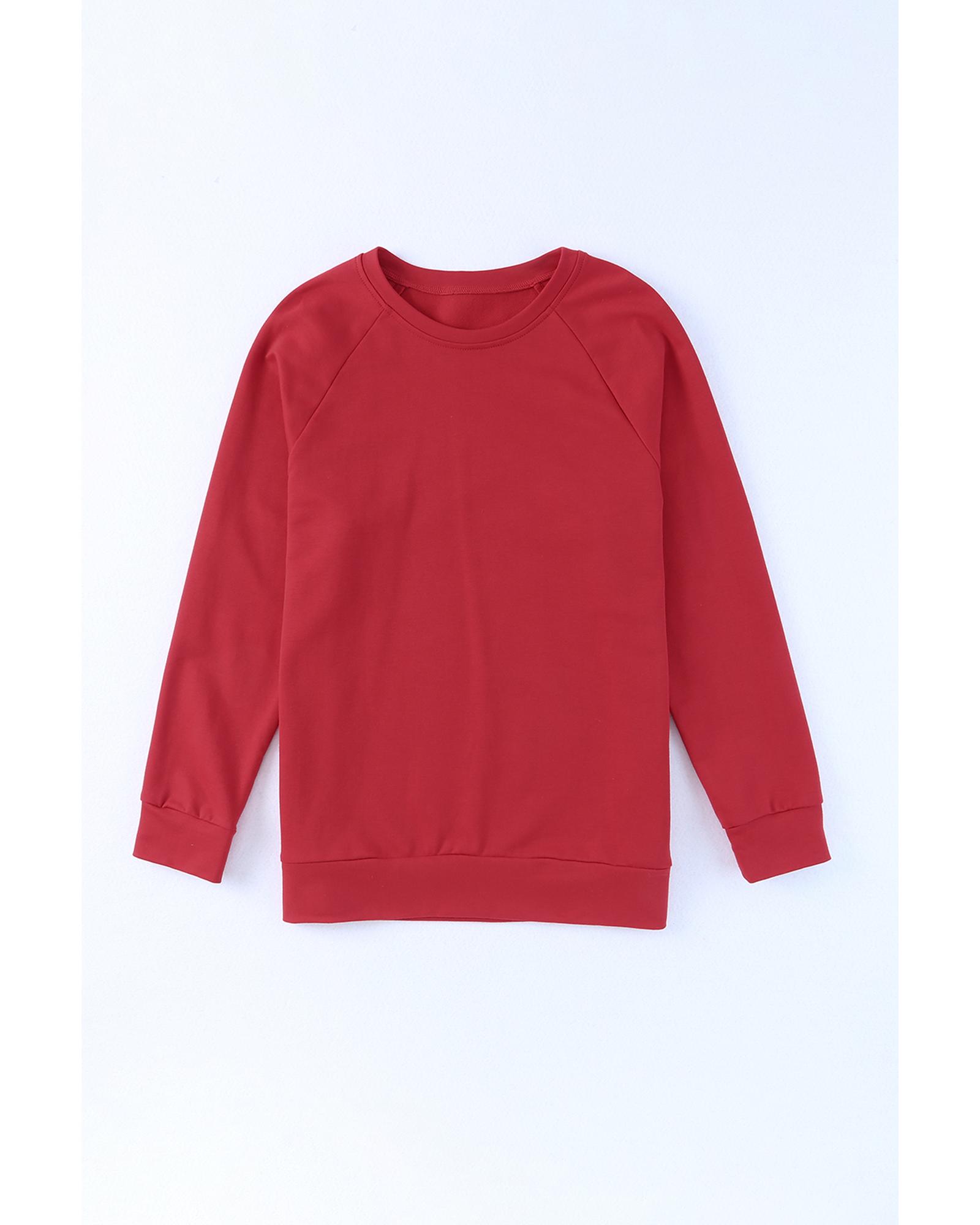 - Solid Round Neck Raglan Sleeve Sweatshirt