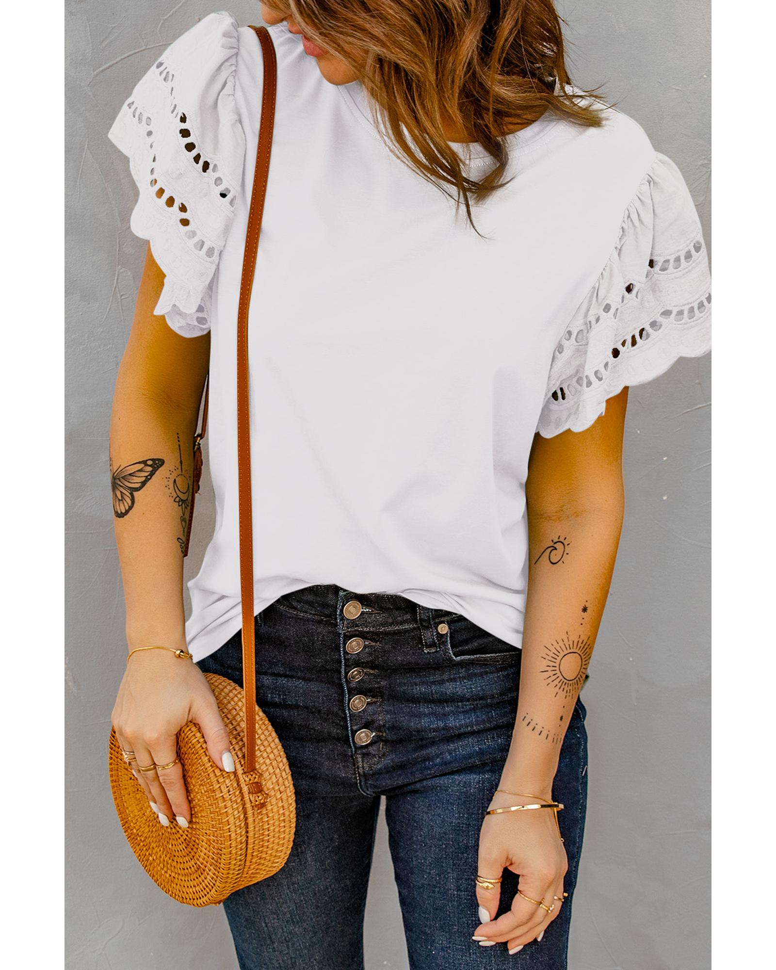 - Stylish and trendy Hollow Out Ruffle Sleeve T-shirt