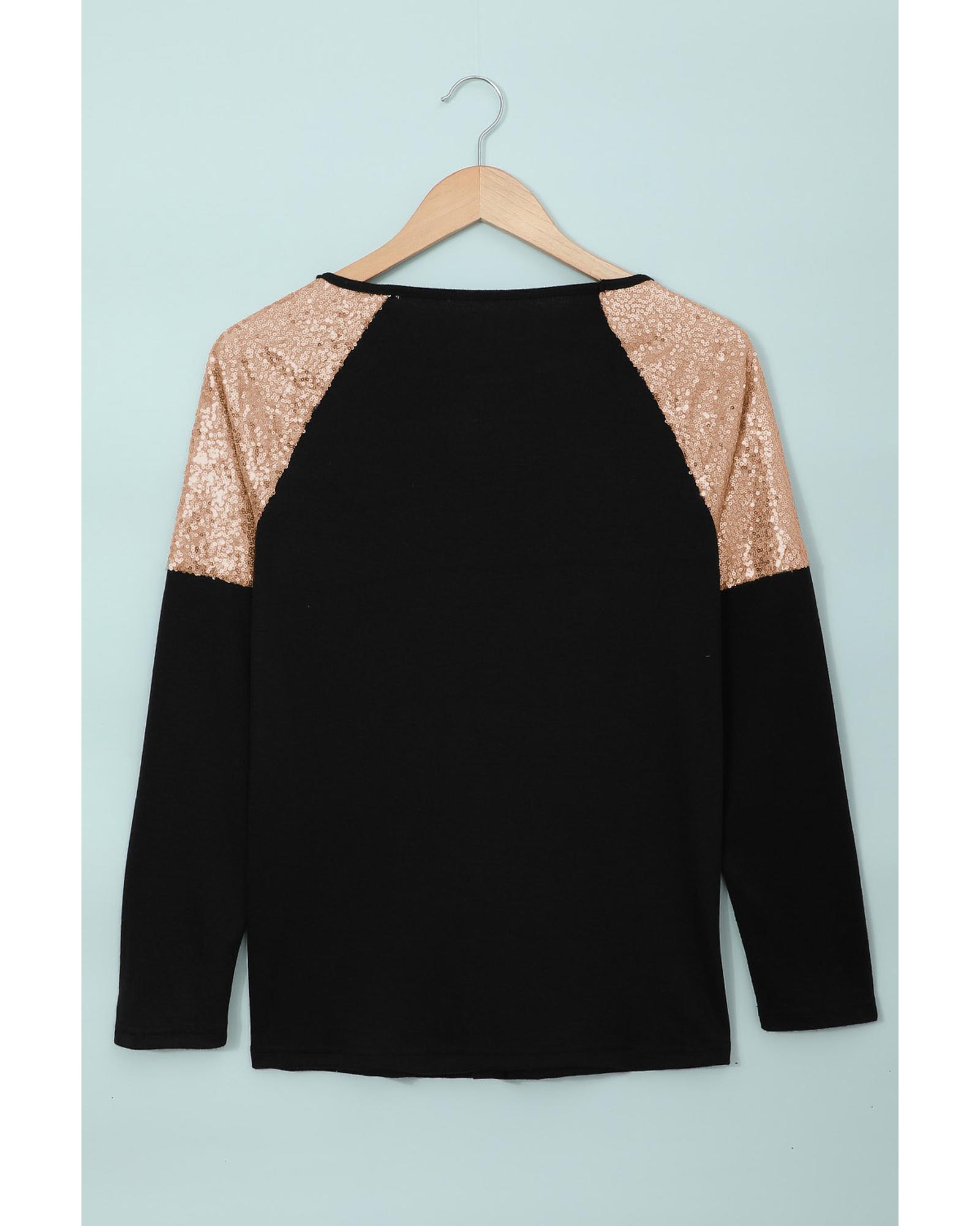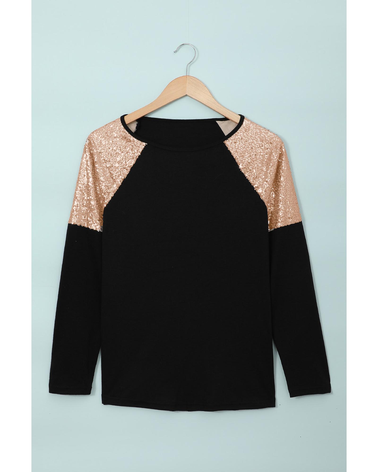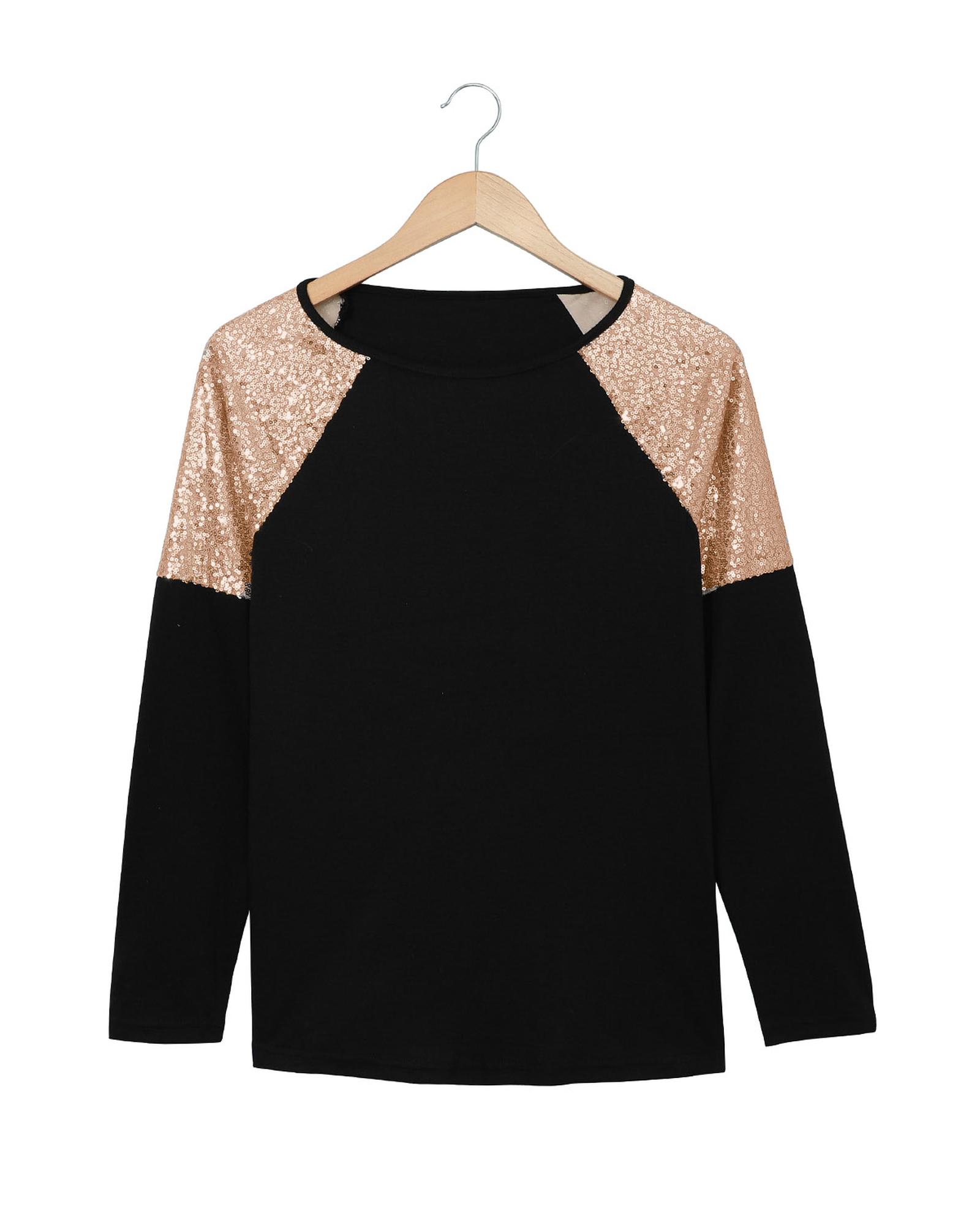 - Sequin Shoulder Long Sleeve Top