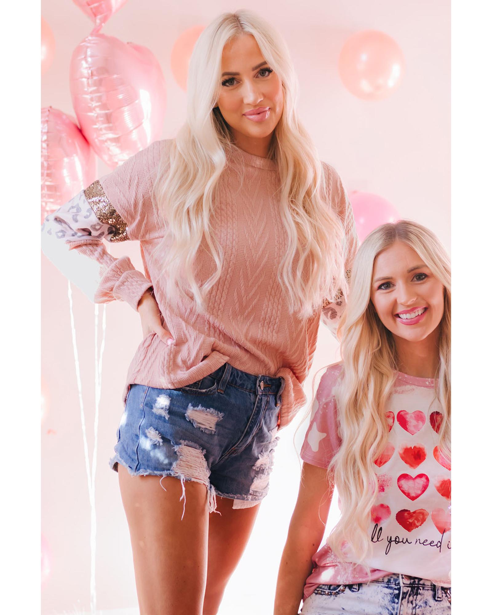 - Stylish and trendy Leopard Sequin Splicing Sleeves Textured Knit Top