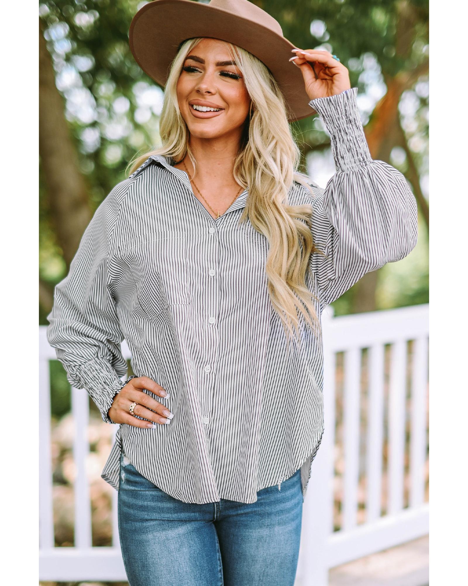 Azura Exchange Striped Boyfriend Shirt with Smocked Cuffs and Pocket – S