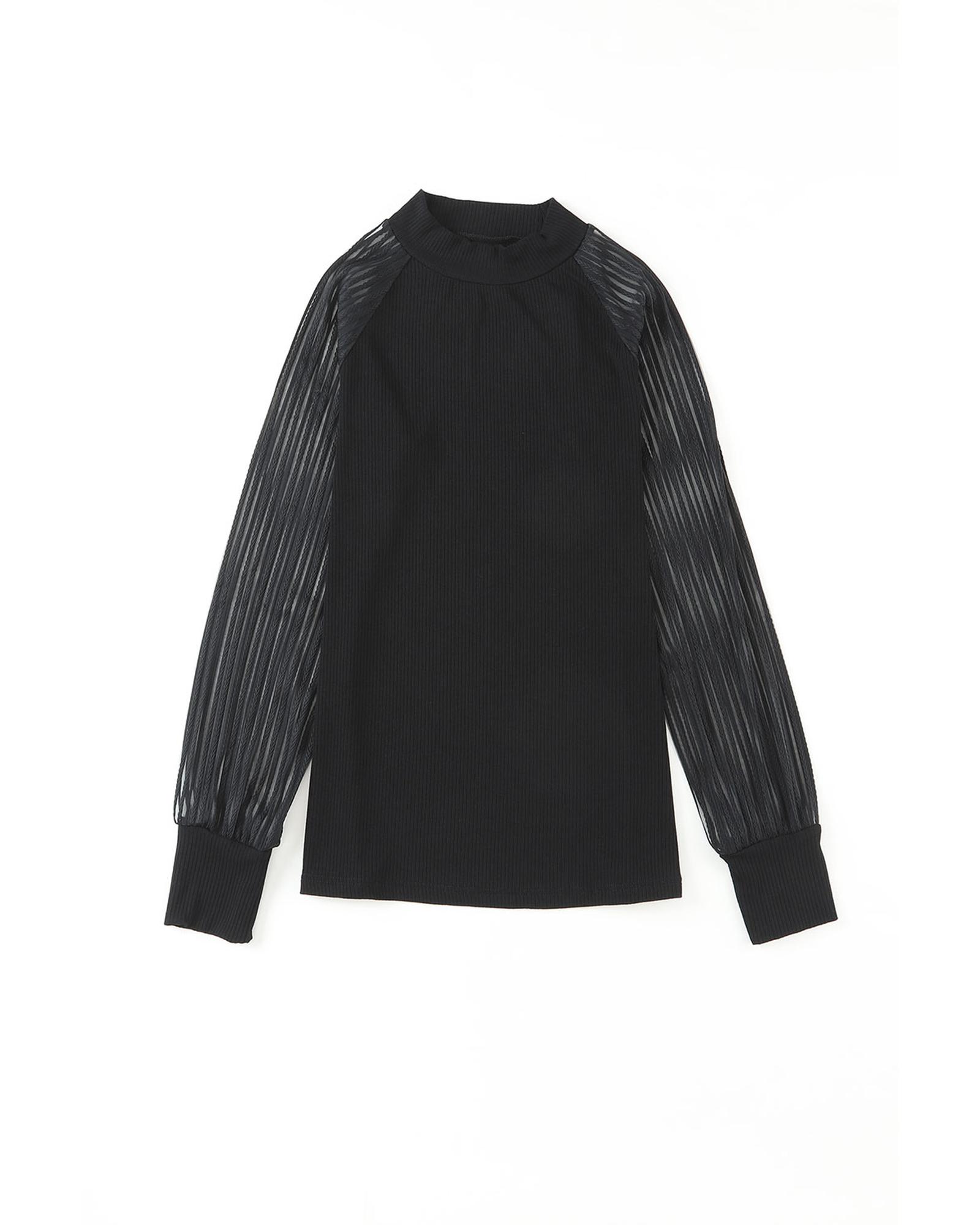 Azura Exchange Striped Mesh Long Sleeve Crewneck Ribbed Top – L