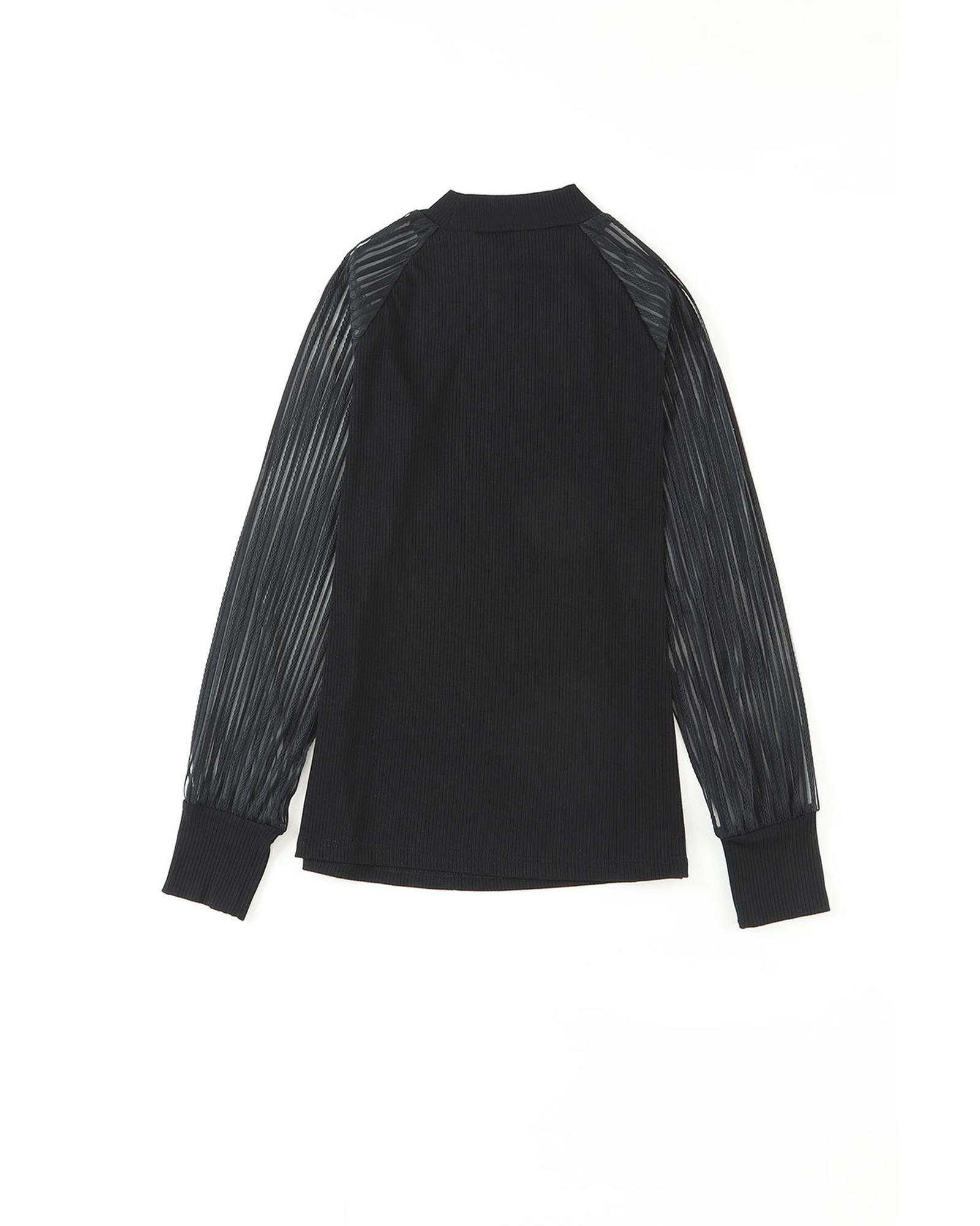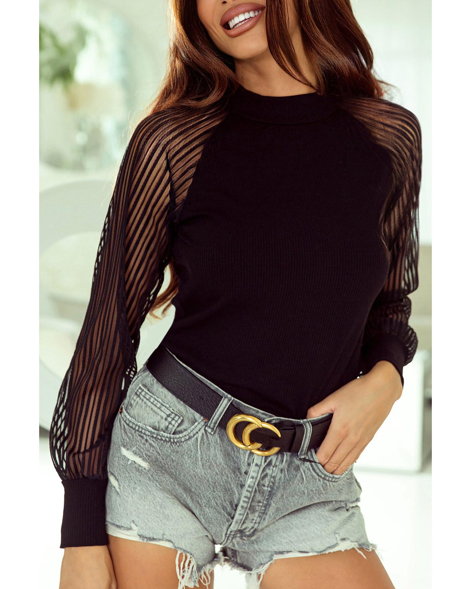 Azura Exchange Striped Mesh Long Sleeve Crewneck Ribbed Top - XL