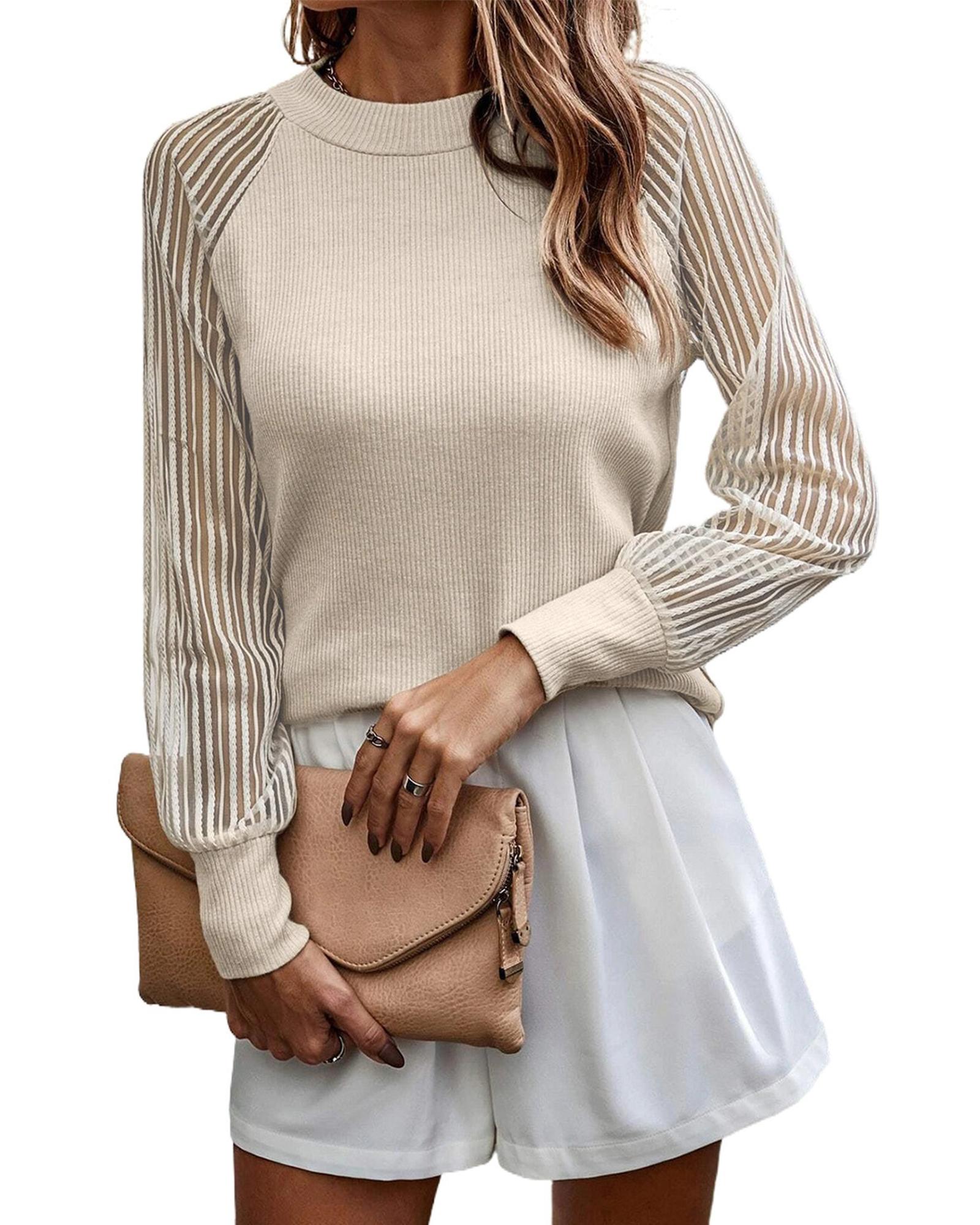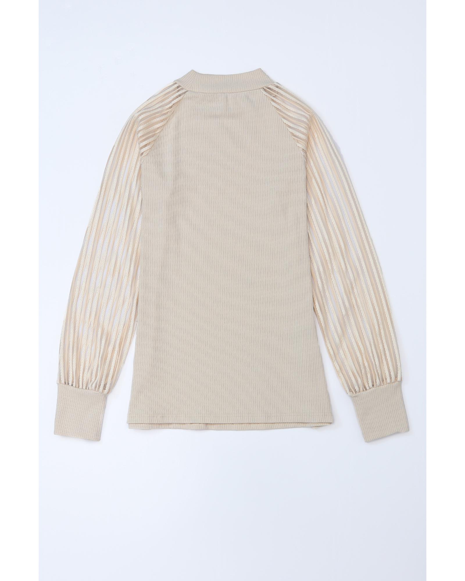 Azura Exchange Striped Mesh Long Sleeve Ribbed Top - 2XL