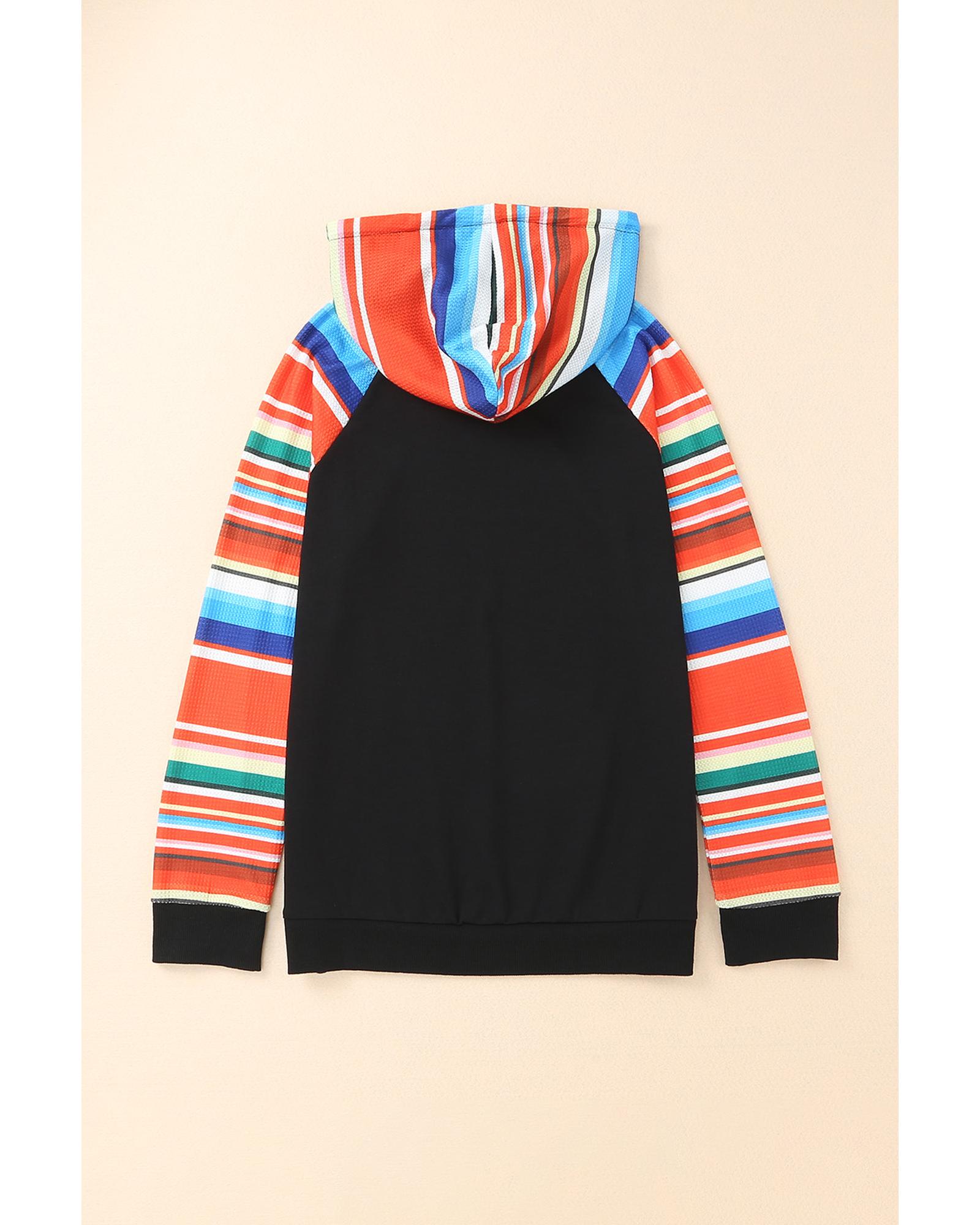 - Multicolor Colorful Striped Patchwork Kangaroo Pocket Hoodie