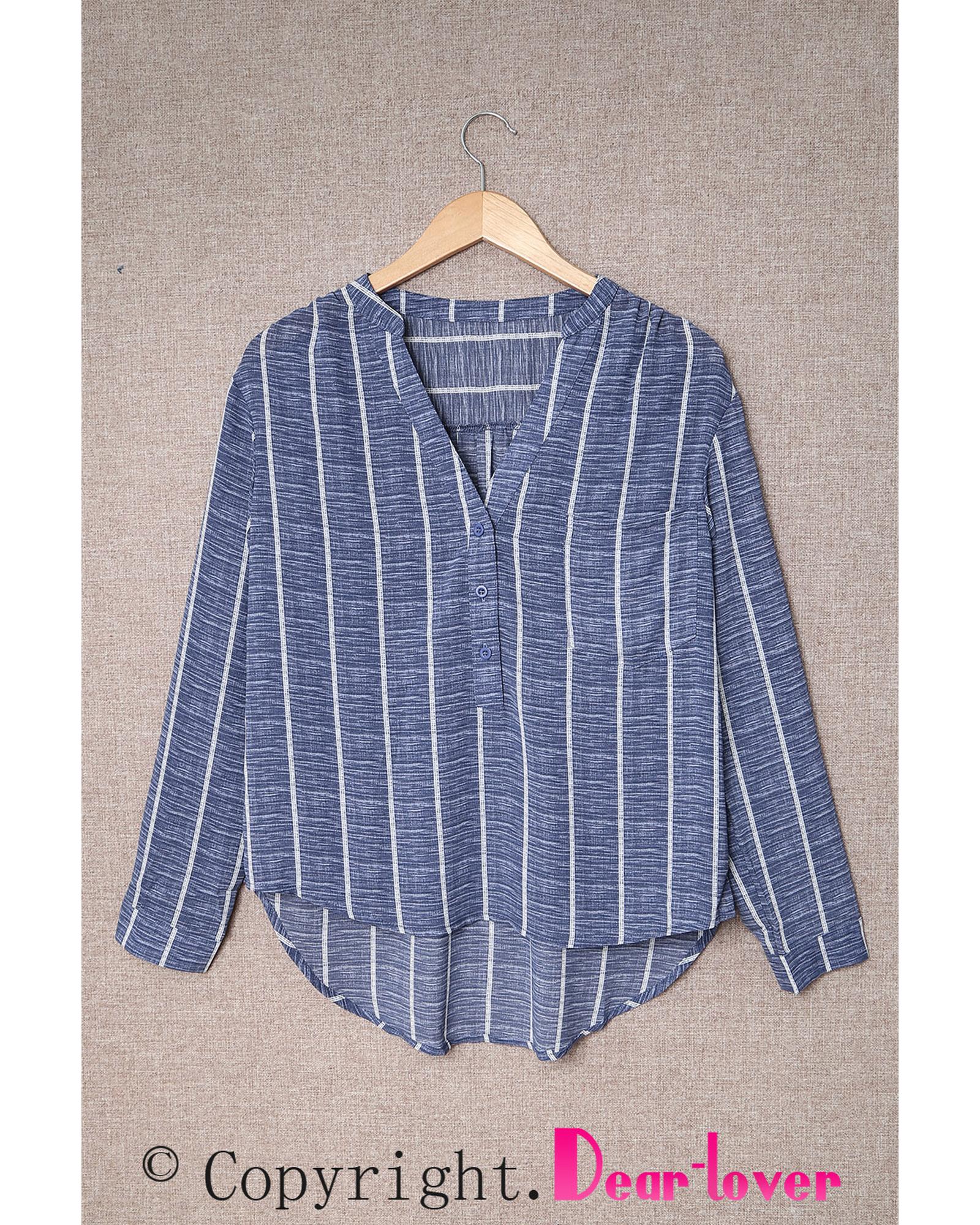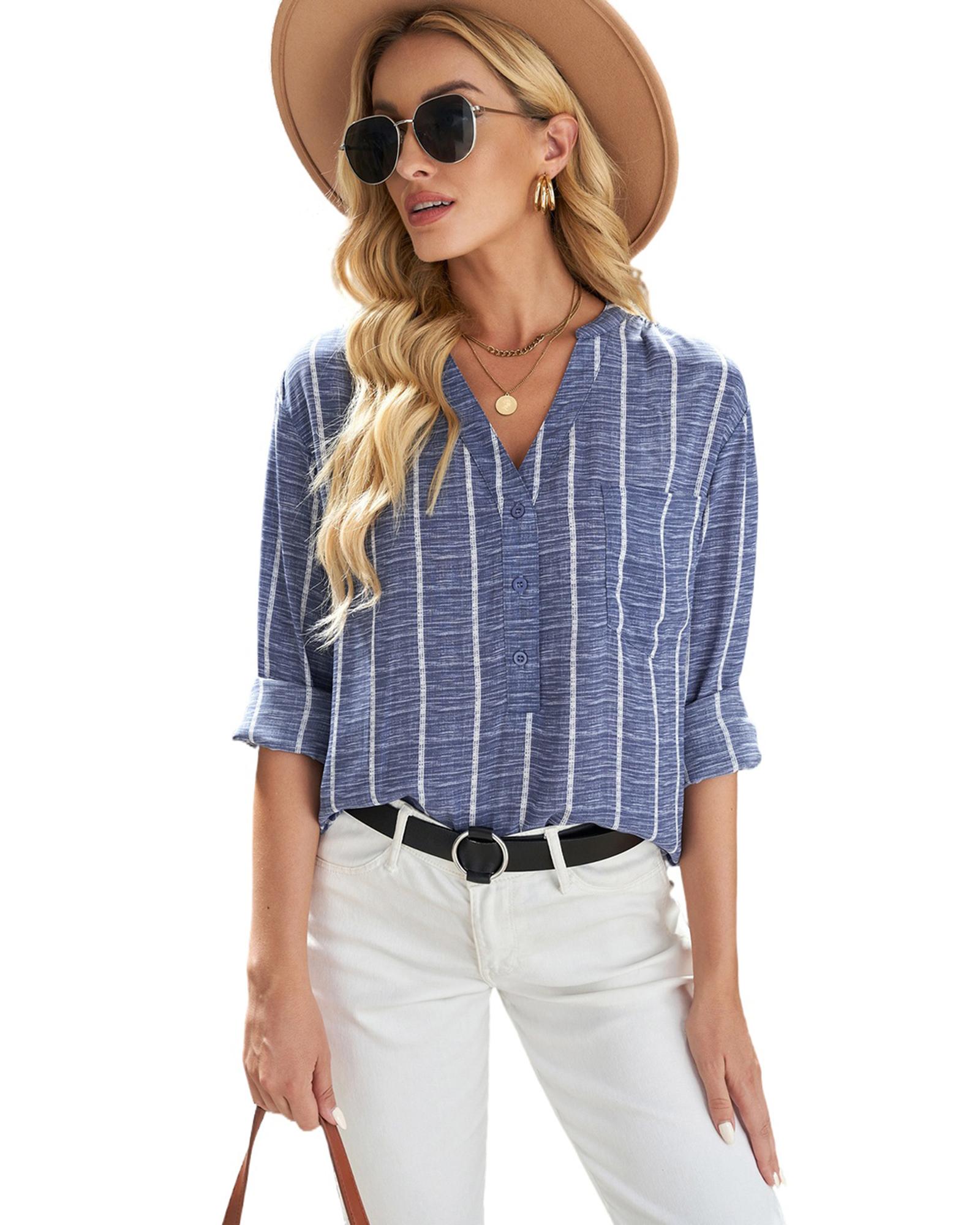 - Stylish and versatile Striped V Neck Pocket Long Sleeve Top