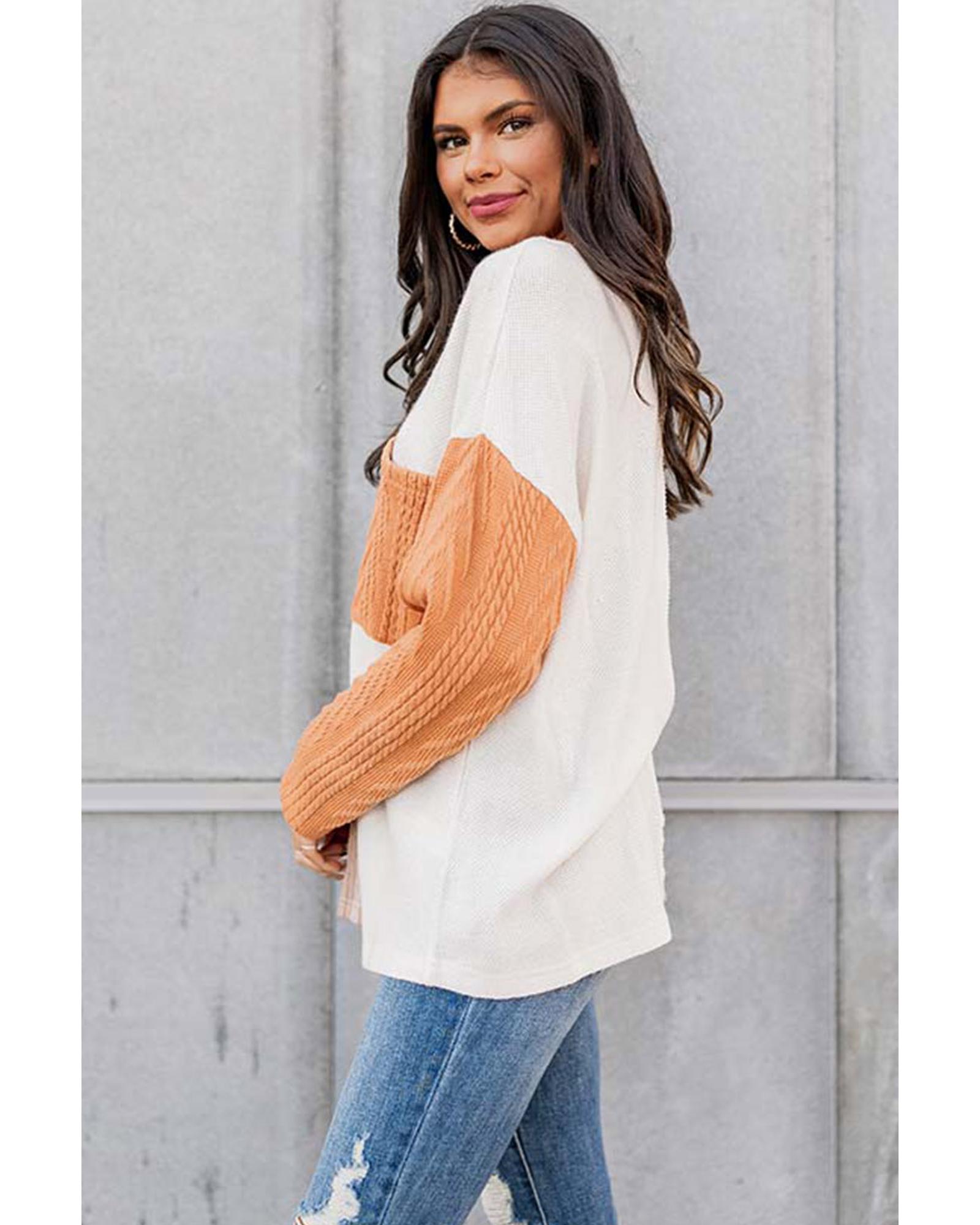 Azura Exchange Textured Knit Top with Colorblock Chest Pocket - L
