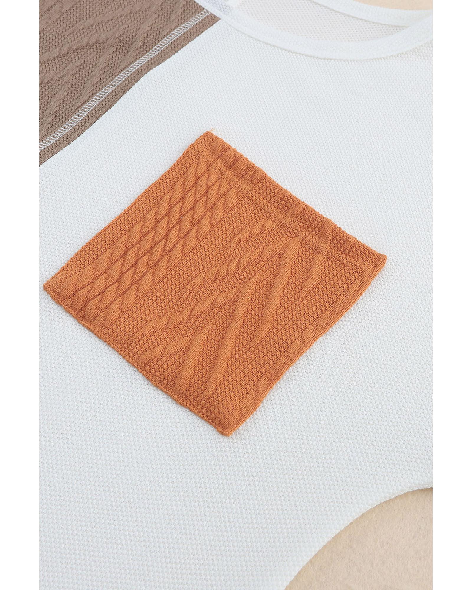 Azura Exchange Textured Knit Top with Colorblock Chest Pocket – S