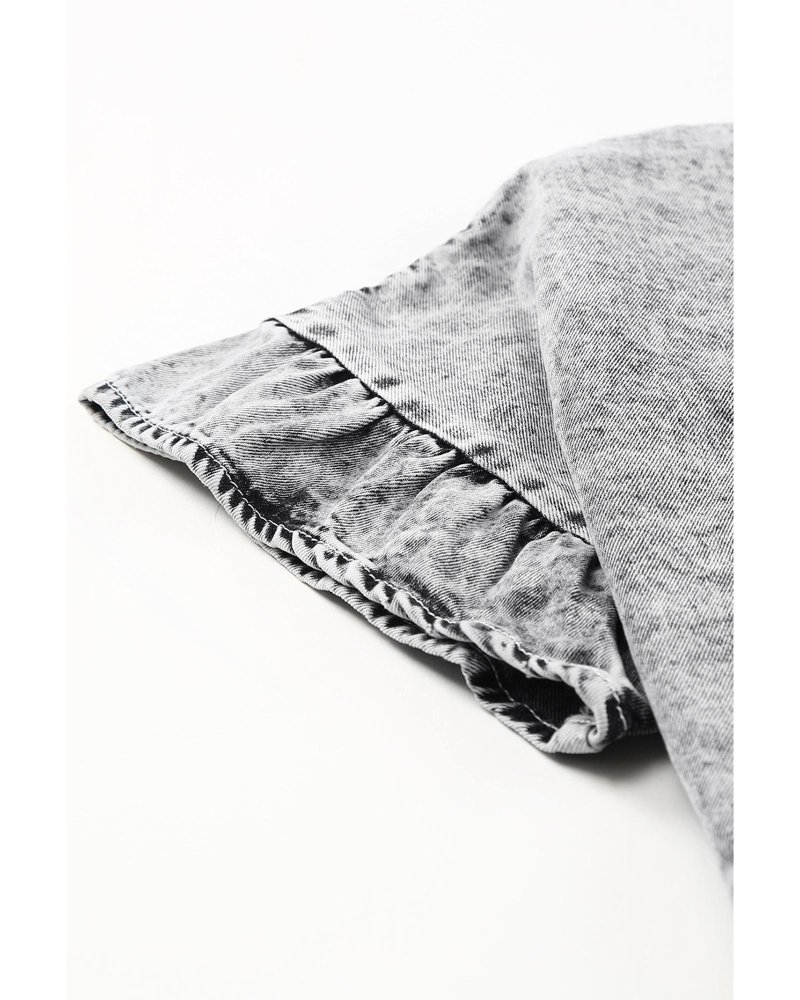 - Stylish and feminine Flutter Sleeves Tiered Denim Top