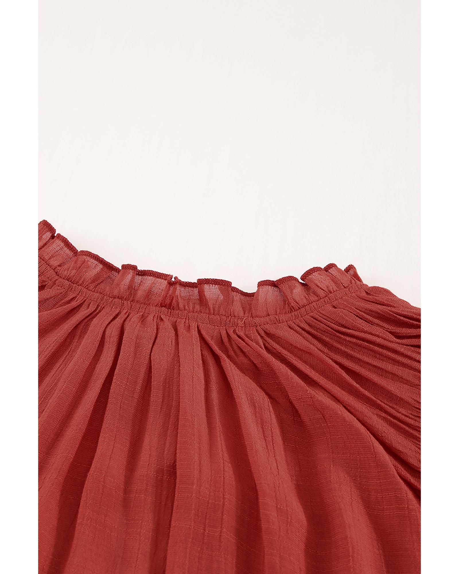 - Stylish and feminine Tiered Ruffled Drawstring V Neck Top