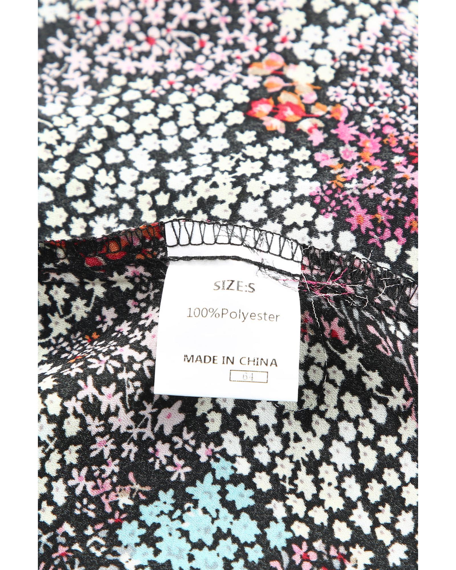 Azura Exchange Vibrant Floral Tie V Neck Puff Sleeve Blouse - S
