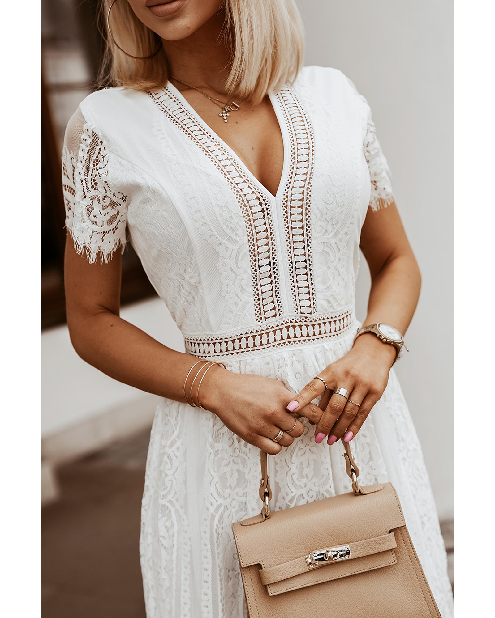 Azura Exchange White Blue Fill Your Heart Lace Maxi Dress – 2XL