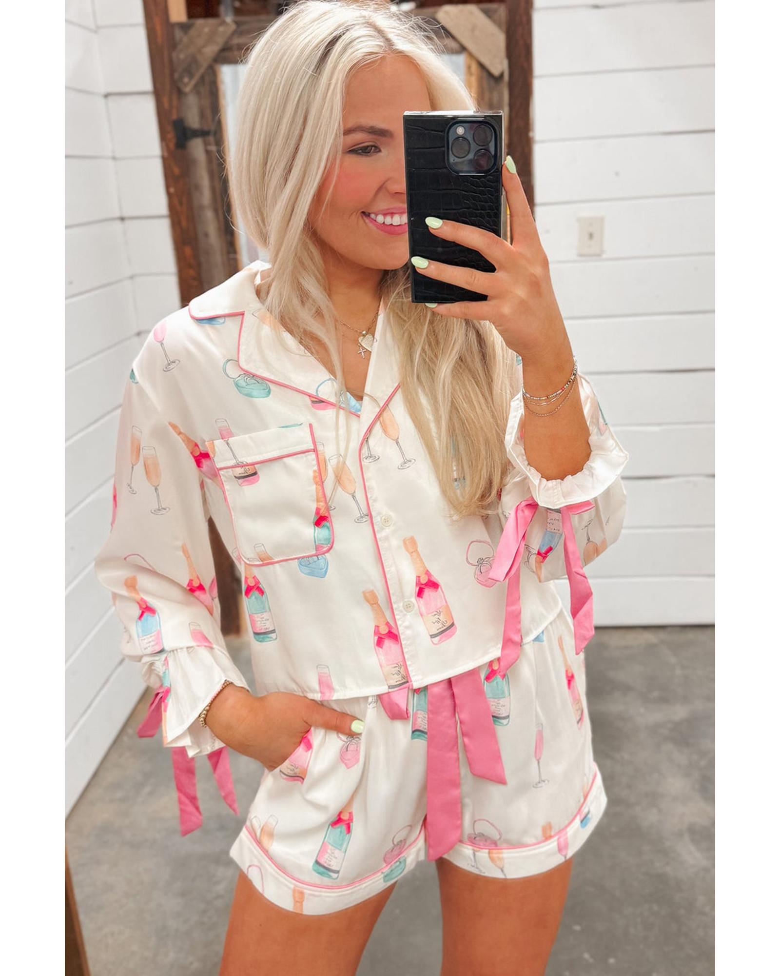 Azura Exchange White Christmas Wine Glass Print Bow Knot Two Piece Pajama Set – XL