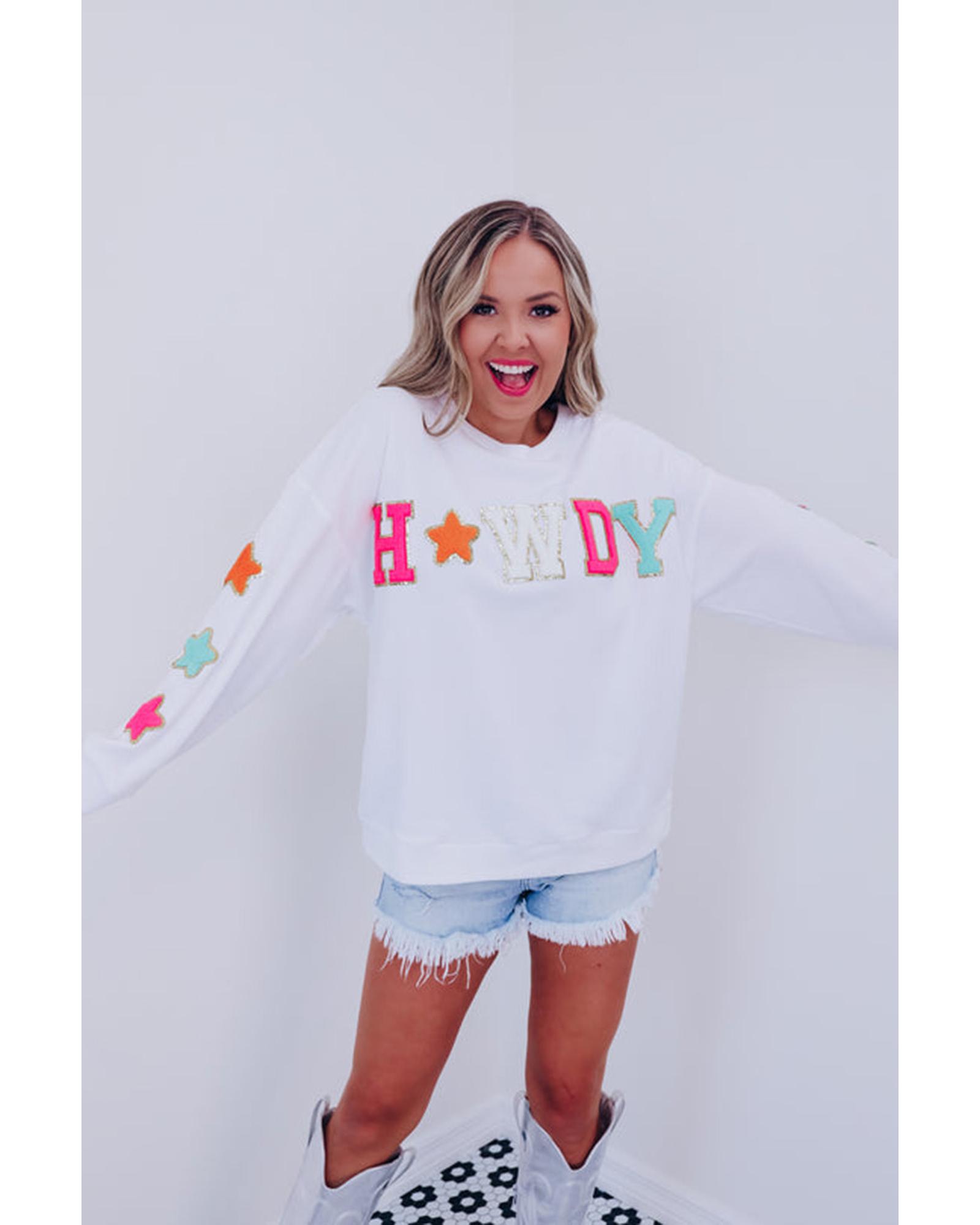 Azura Exchange White Glitter Howdy Patch Graphic Casual Sweatshirt – S