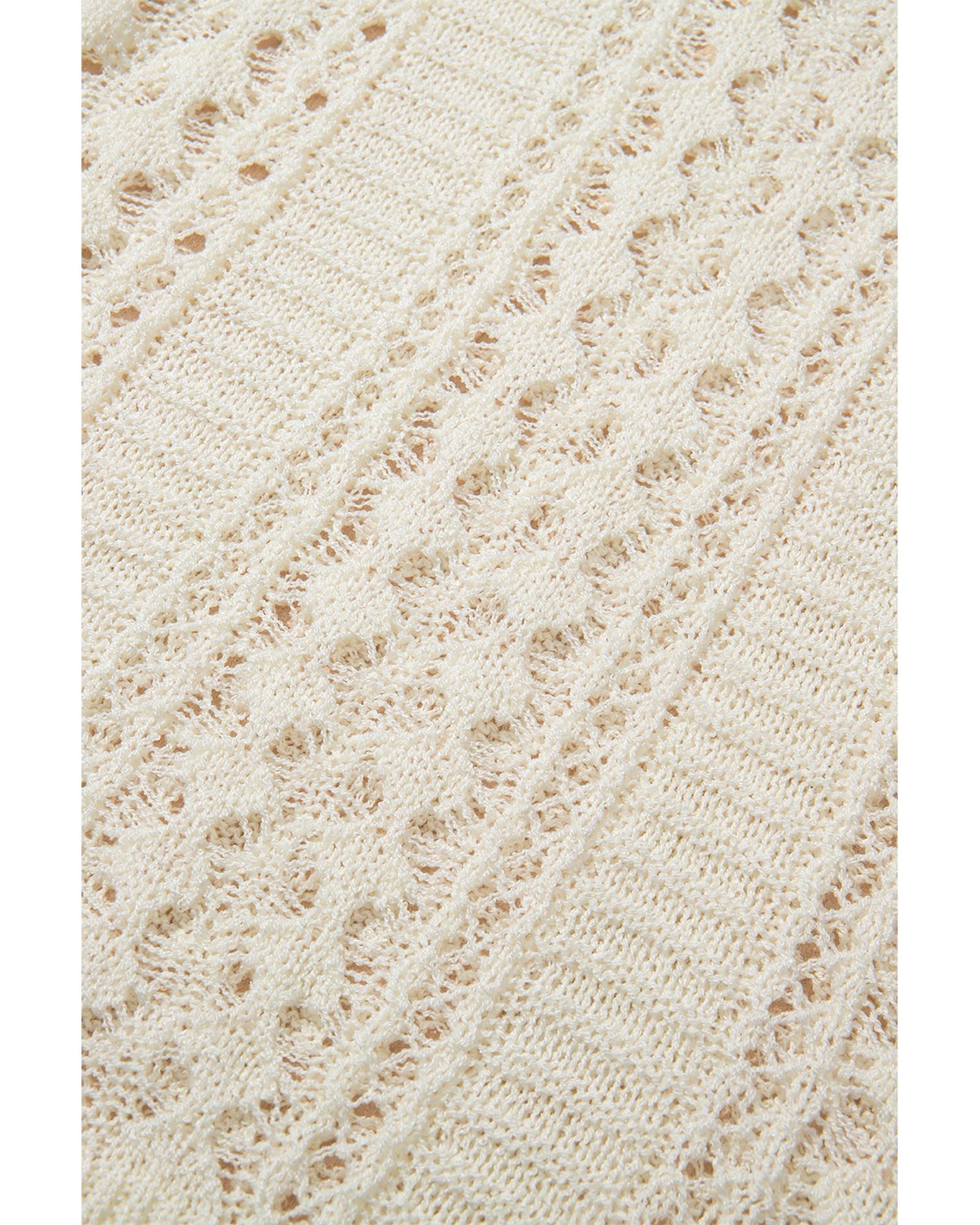 Azura Exchange White Hollow Out Knit Bracelet Sleeve Drop Shoulder Sweater – S