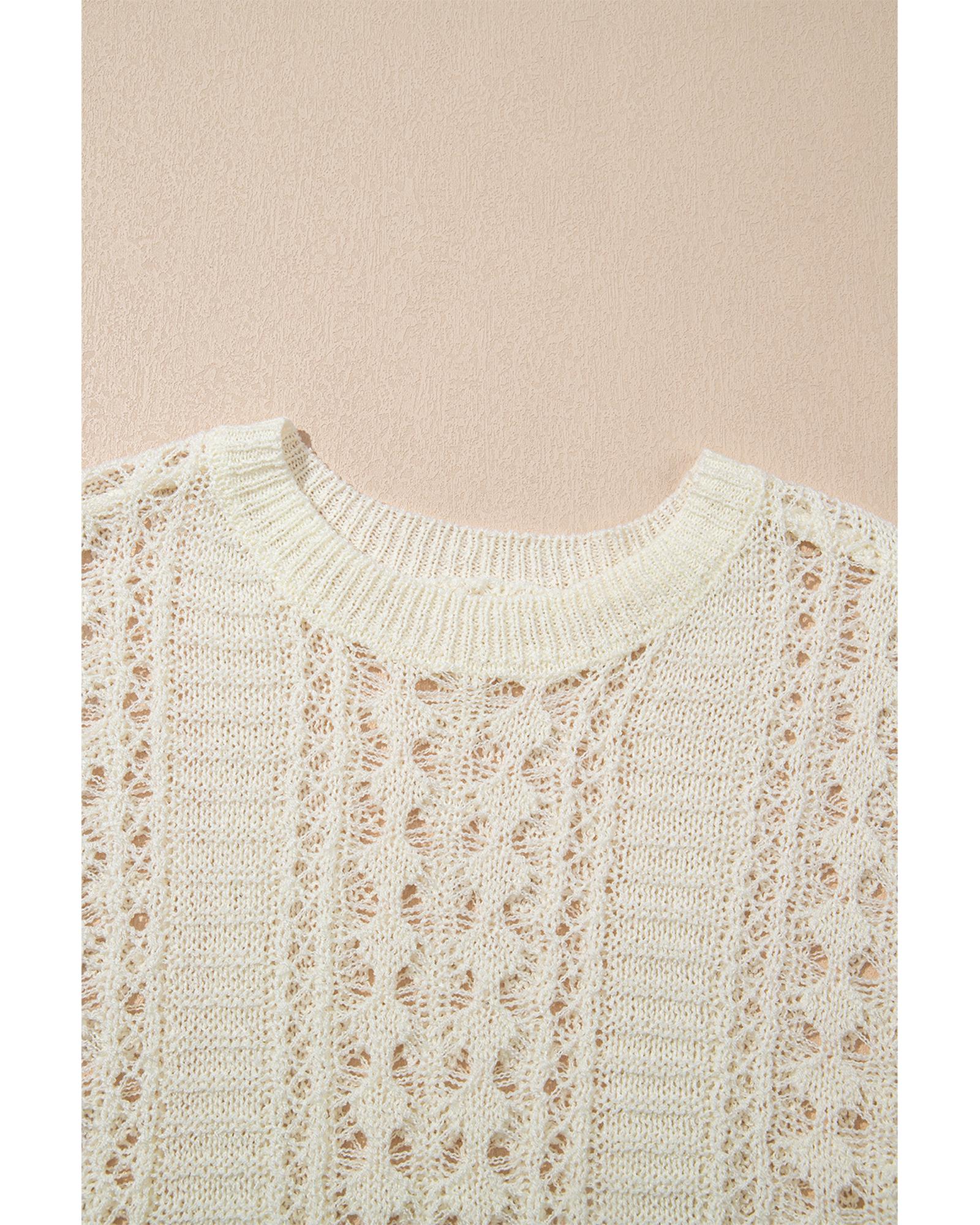 Azura Exchange White Hollow Out Knit Bracelet Sleeve Drop Shoulder Sweater – XL