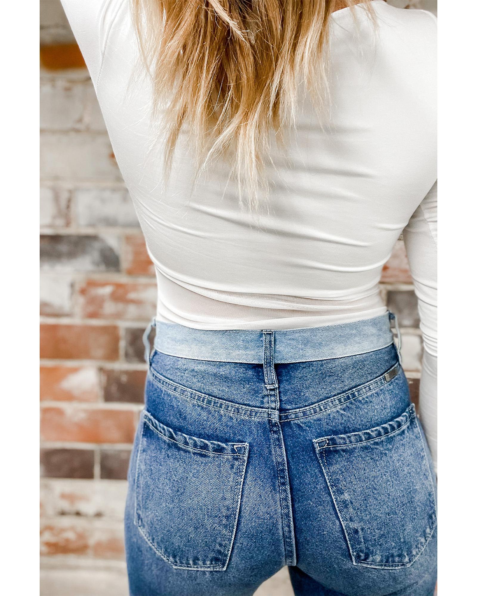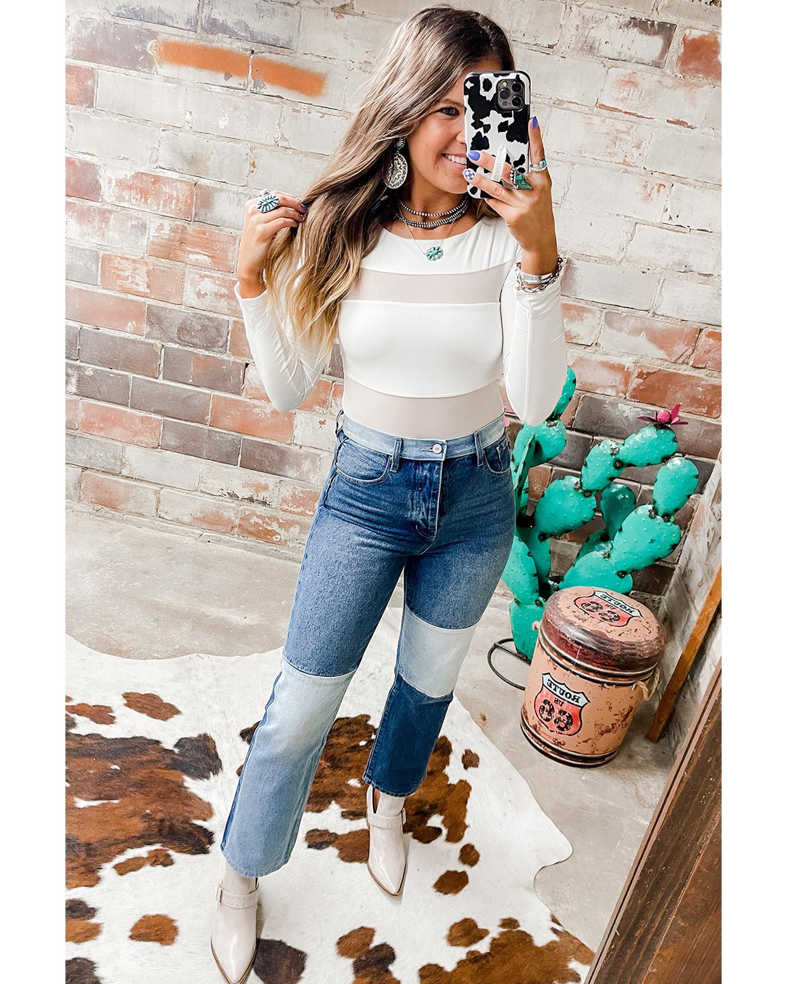 Azura Exchange White Mesh Patchwork Long Sleeve Bodysuit – XL