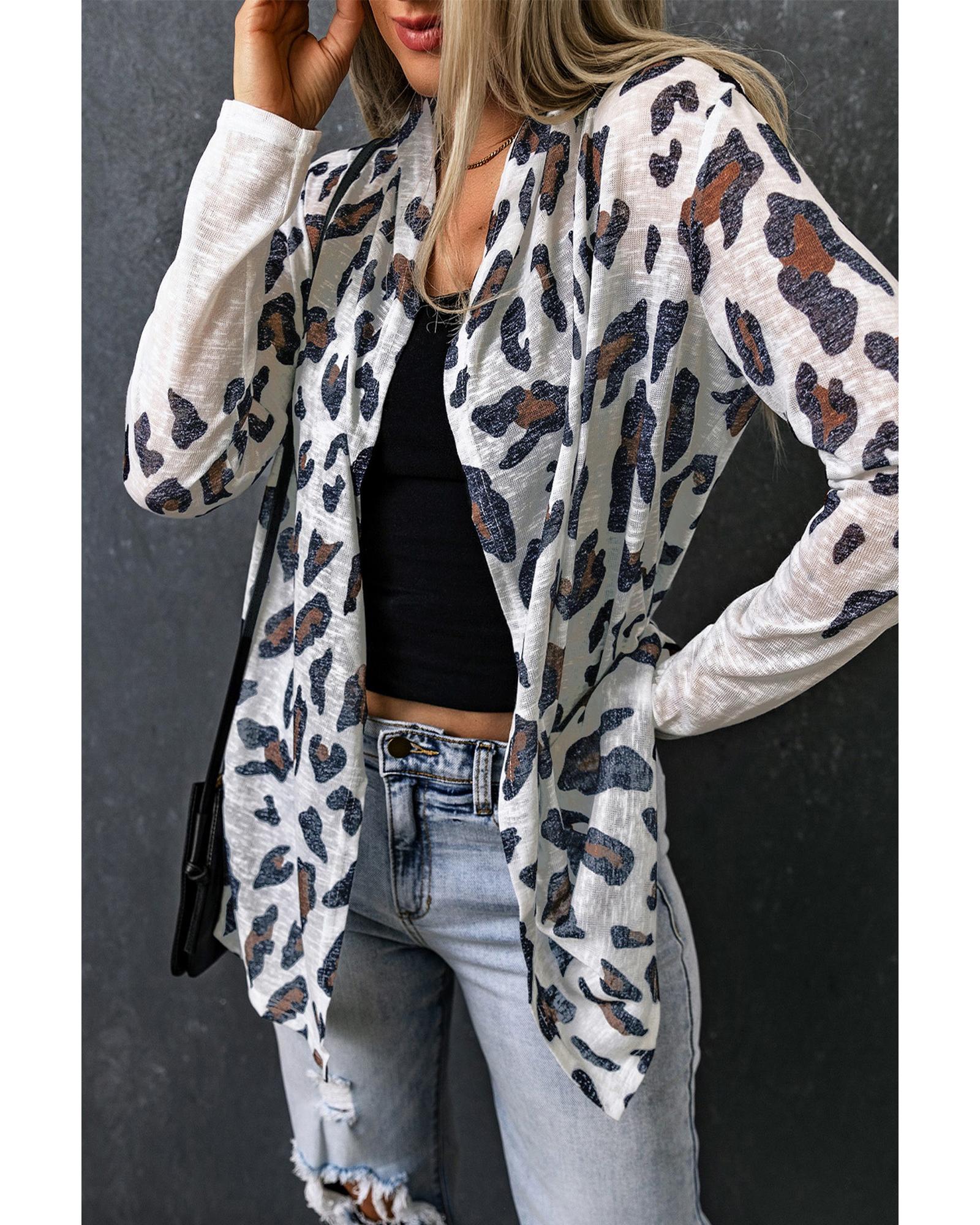 Azura Exchange White Vintage Leopard Print Open Cardigan – L