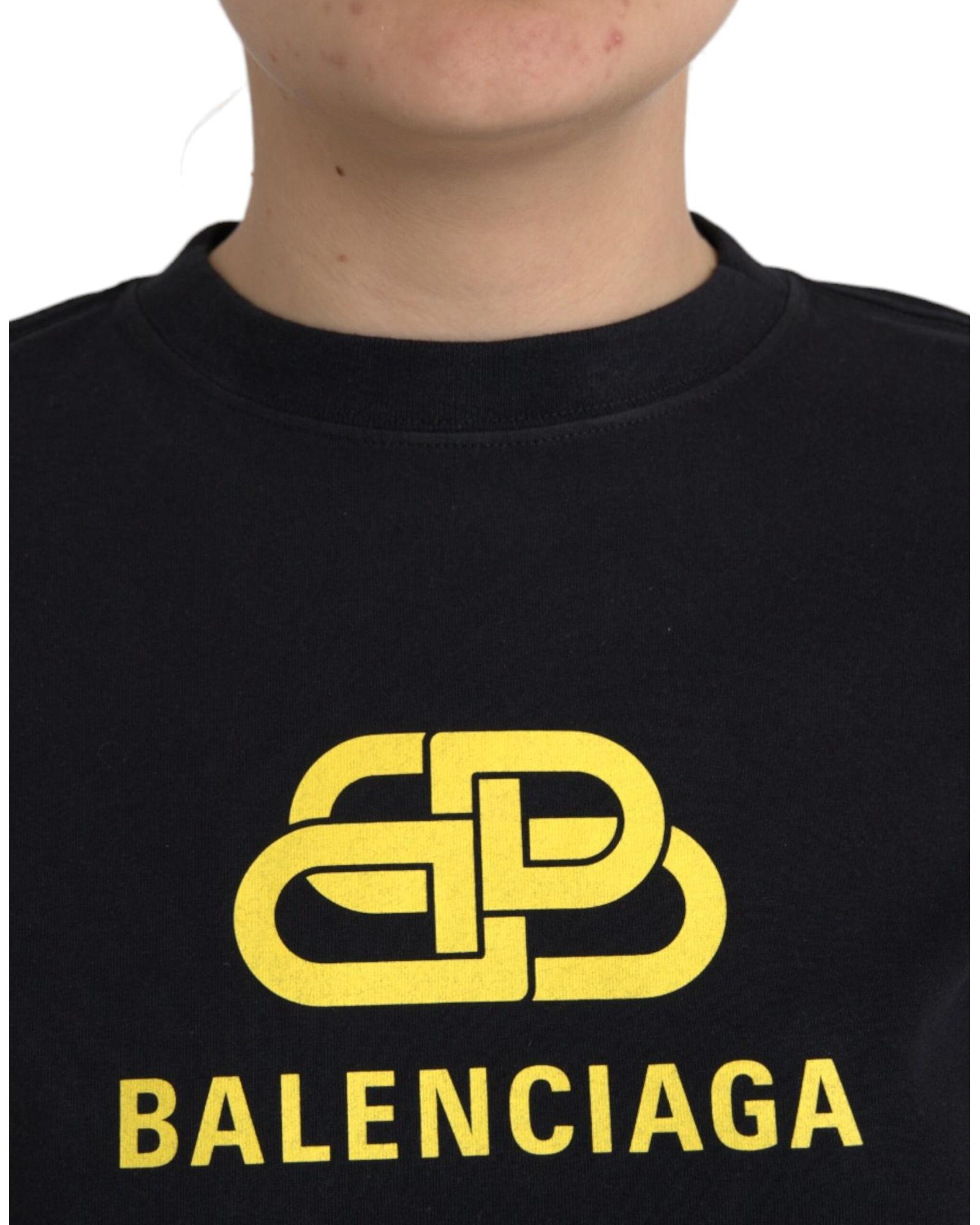 Balenciaga Women’s Black Cotton Logo Crew Neck Short Sleeves T-shirt – L