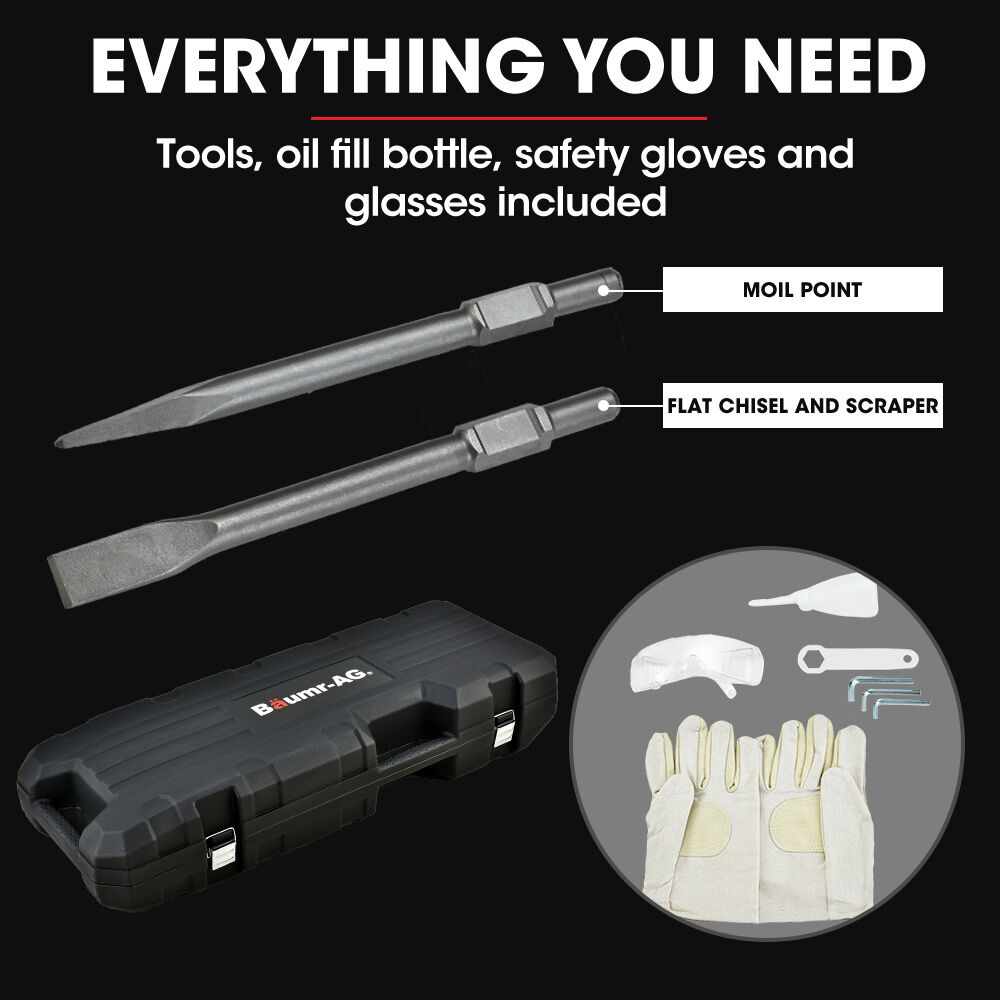 Baumr-AG 2400W Pro-Grade Electric Demolition Jackhammer, with 3 Bonus Chisels, Carry Case