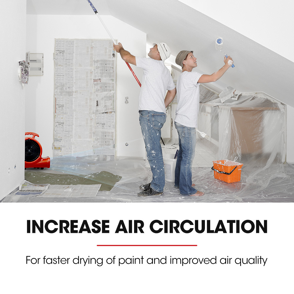 This Air Mover also features an extendable kickstand which allows for adjusting the angle for the most effective drying of floors, staircases, walls and ceilings.