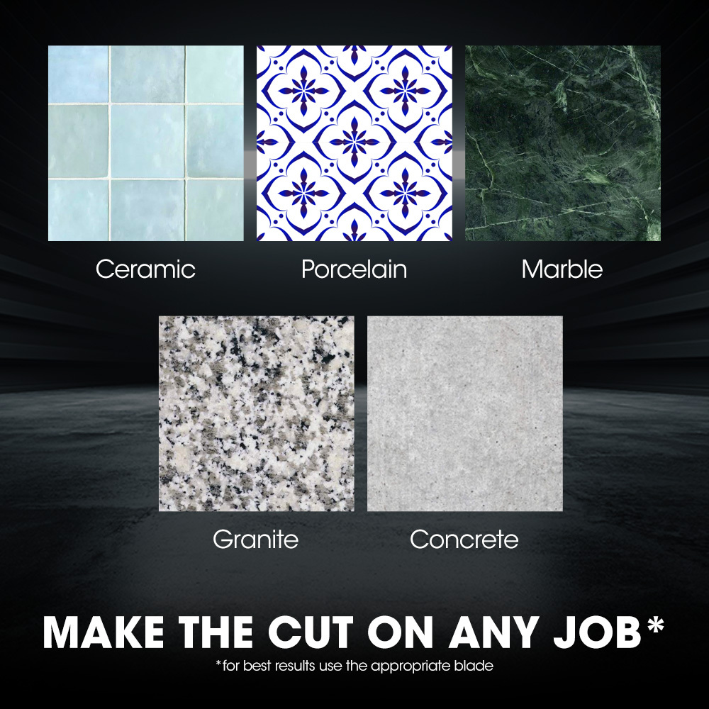 - Please Note: The supplied blade may not be suitable for all applications, refer to a tile supplier for the recommended blade.