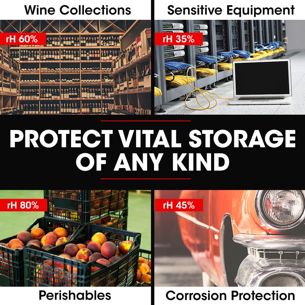 - Applications: Water restoration, shopping malls, hospitals, office buildings, basements, garage, warehouses, archives, server rooms