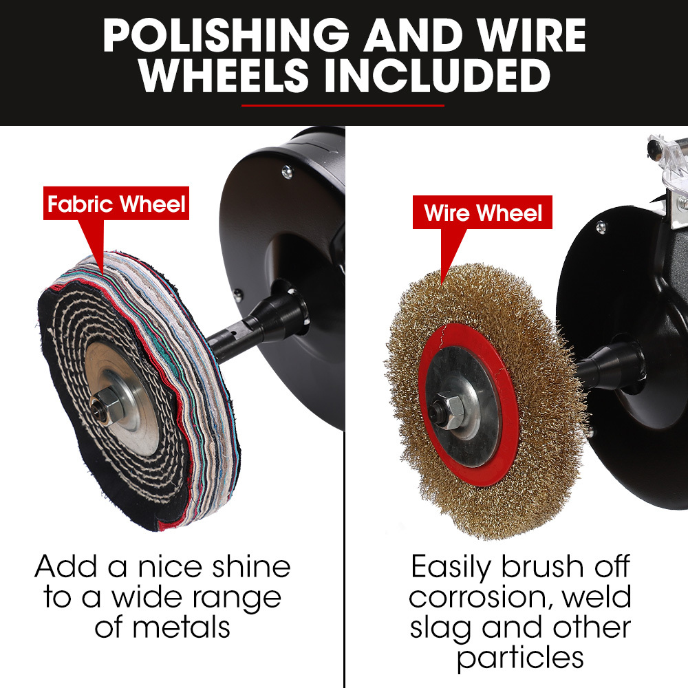 From crafting handmade treasures to chamfering carpentry workpieces, this bench belt sander grinder is your ultimate tool for a variety of uses. With an exceptionally durable wire wheel and a premium cloth burnishing wheel, it delivers unmatched performance and a flawless finish every time. Its compact and practical design makes it the perfect companion for even the most detailed and delicate projects.