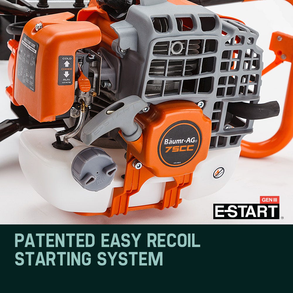 As part of Baumrs latest series, this digger features our exclusive high output 75cc powerhouse which not only deliversmore hp than outdated 82cc engines, but also keeps your auger at speed with it’s unique hi-torque design. The pro-series easily conquers your commercial and industrial digging needs!