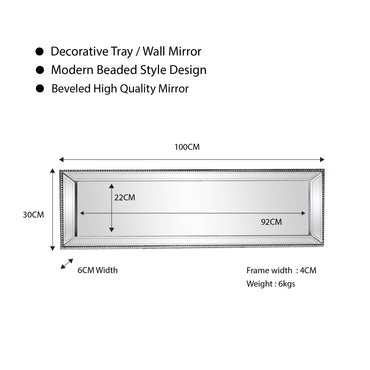 The Beaded Tray in Silver Large is a stylish and functional accessory that will add a touch of elegance to any room. The tray features a beautiful beaded design on the edges, which adds texture and visual interest. The Silver finish gives the tray a sleek and modern look, making it a great choice for contemporary décor styles. The tray is made from high-quality materials, ensuring that it is both durable and long-lasting. It is perfect for use as a decorative accent on a coffee table or ottoman, console table. Overall, the Beaded Tray in Silver Large is a versatile and stylish accessory that is sure to enhance the look of any room.