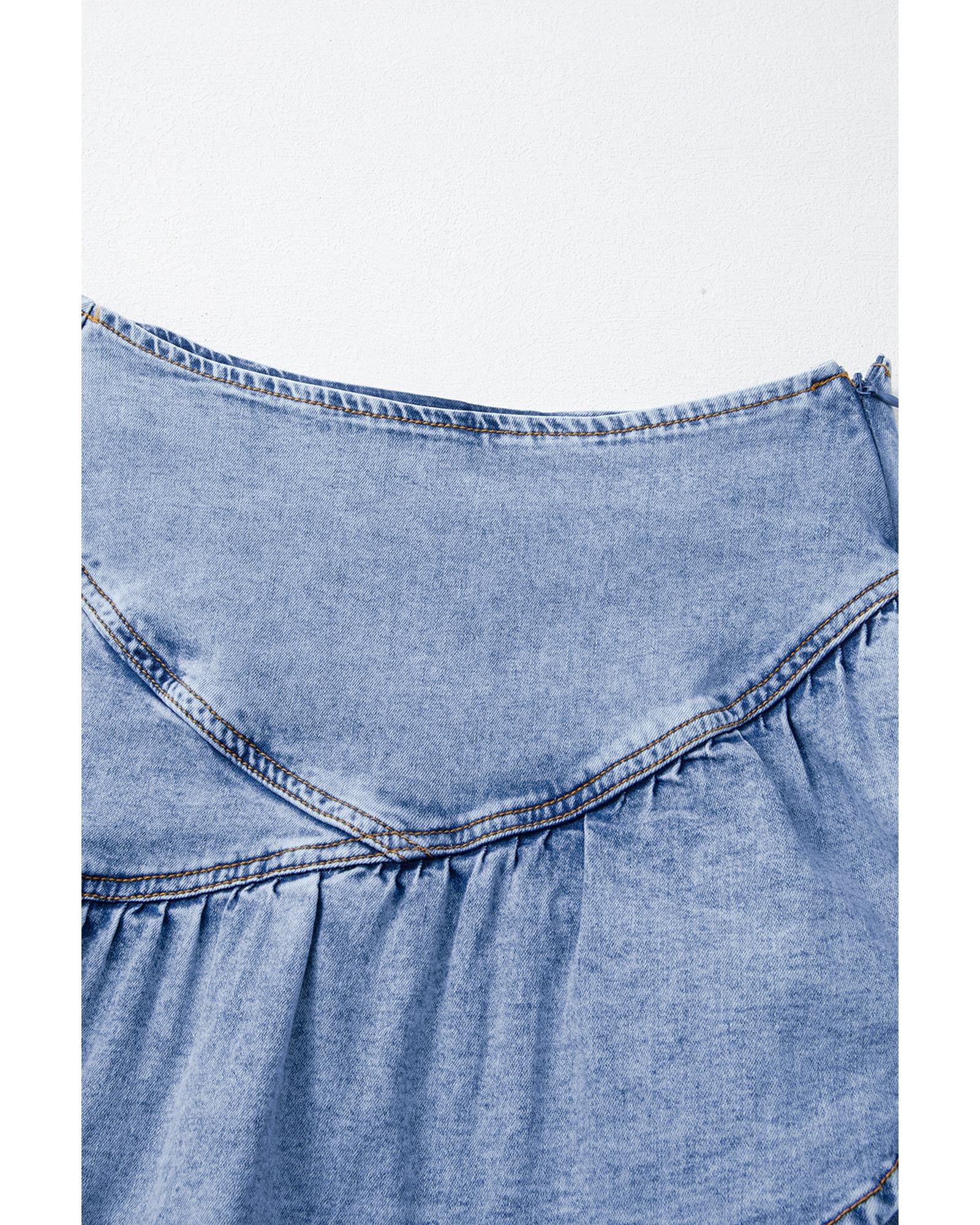 Beau Blue Asymmetric Ruffle Overlay Denim Mini Skirt – XL