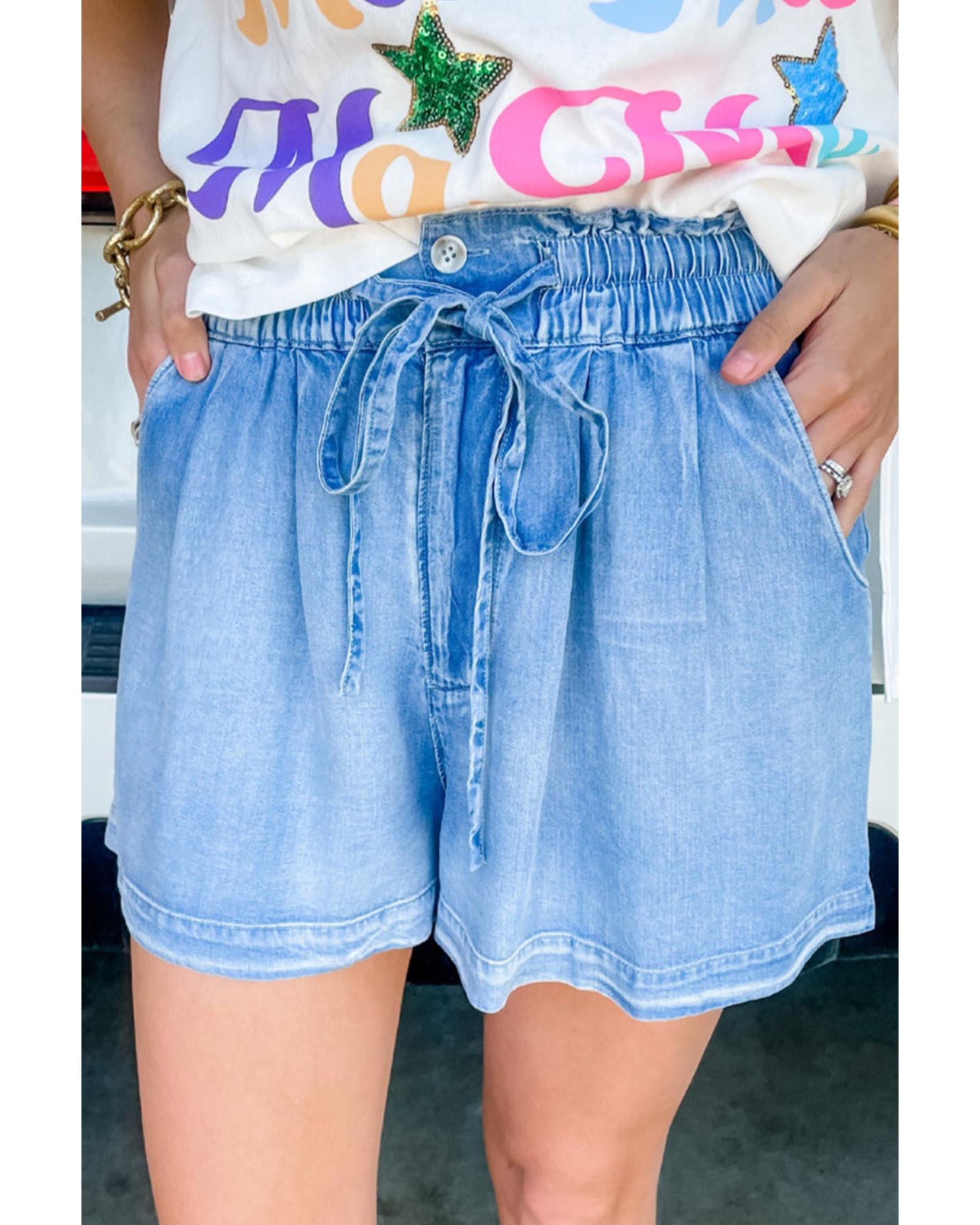 Beau Blue Casual Chambray Drawstring Shorts – 16 US