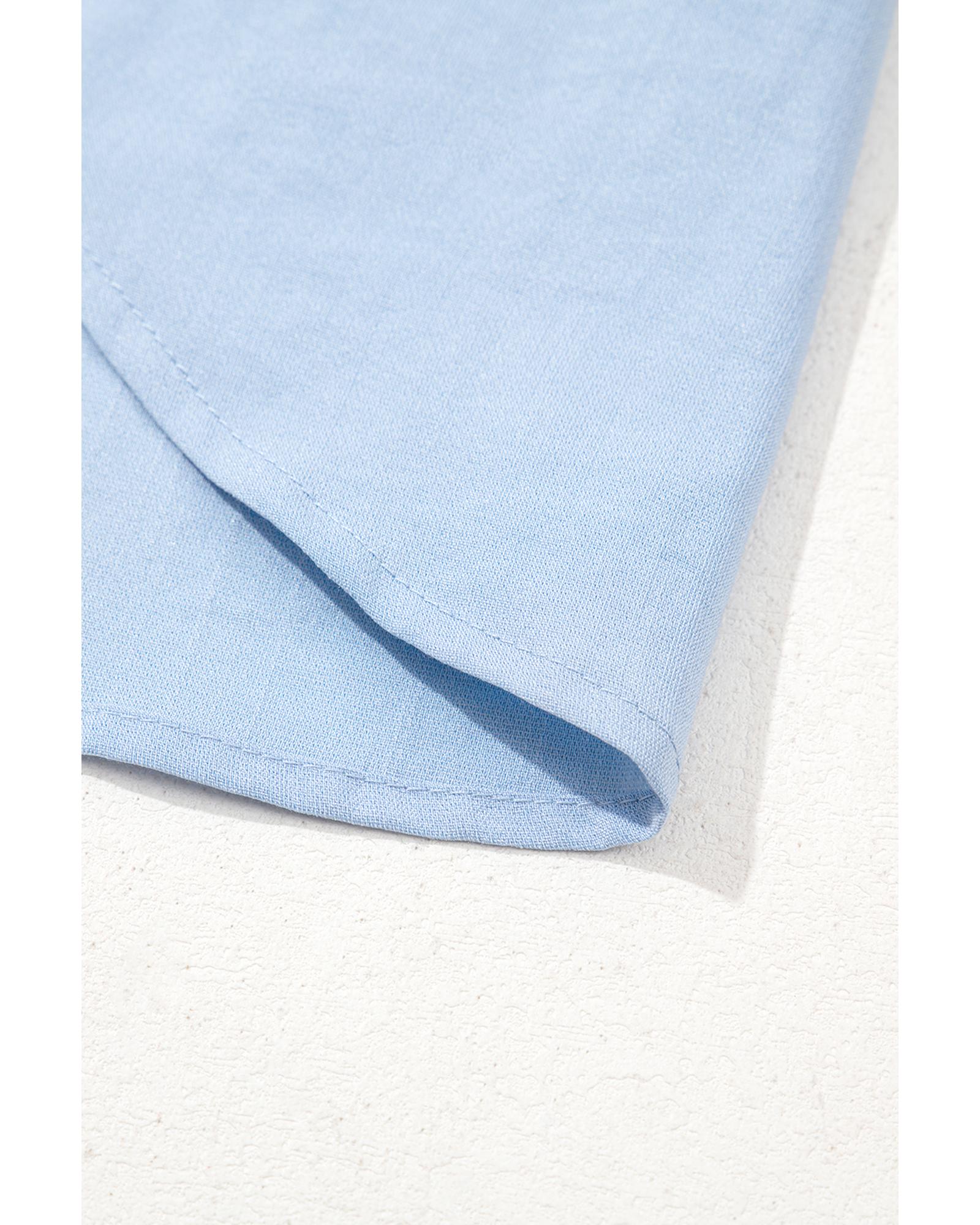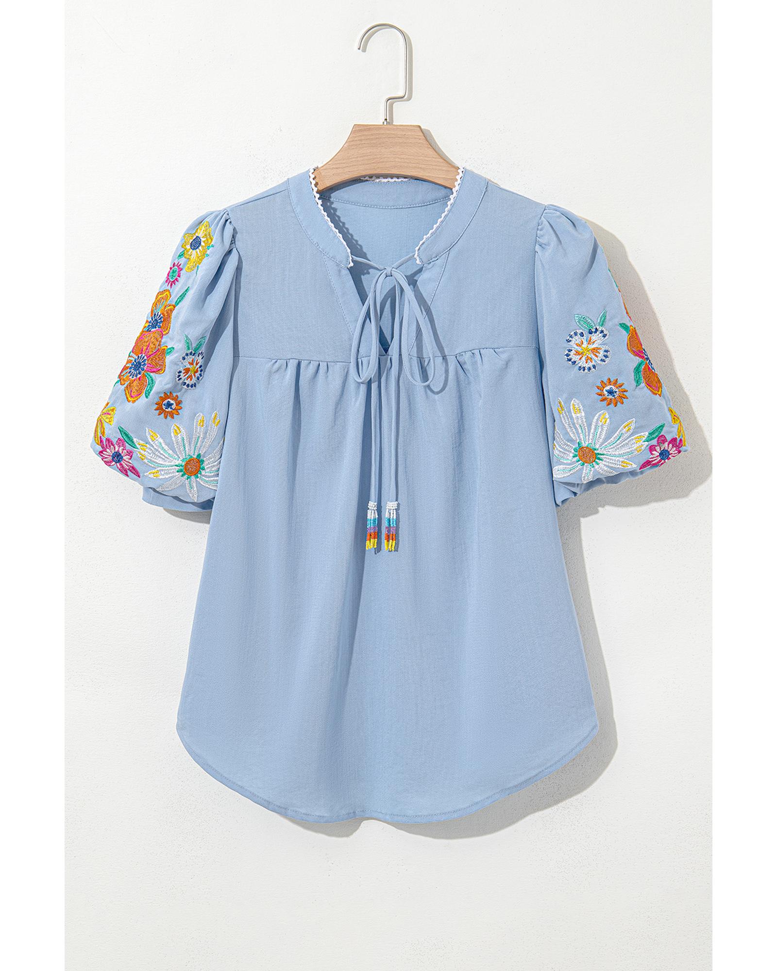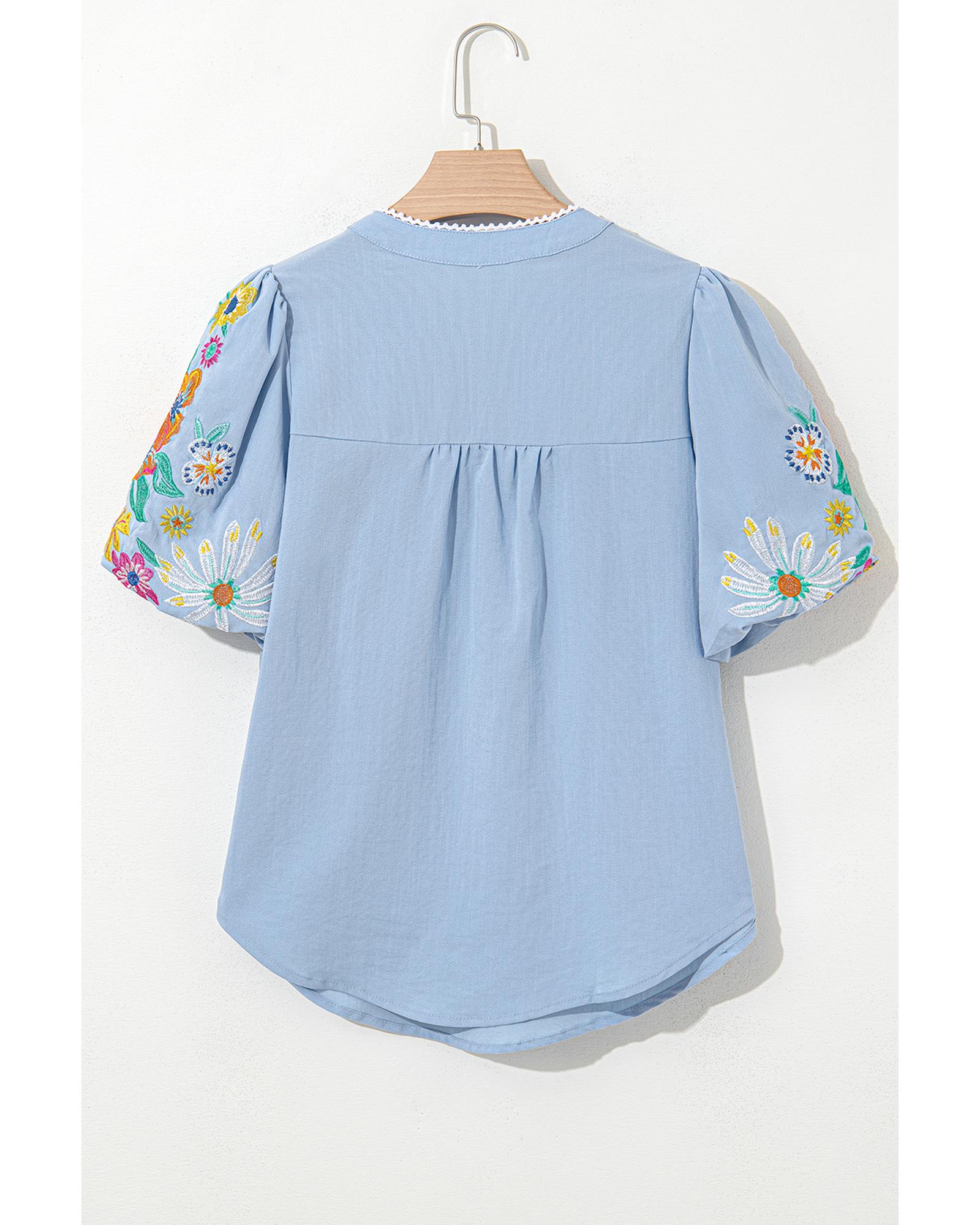 Beau Blue Floral Embroidered Puff Sleeve Split Neck Blouse – XL