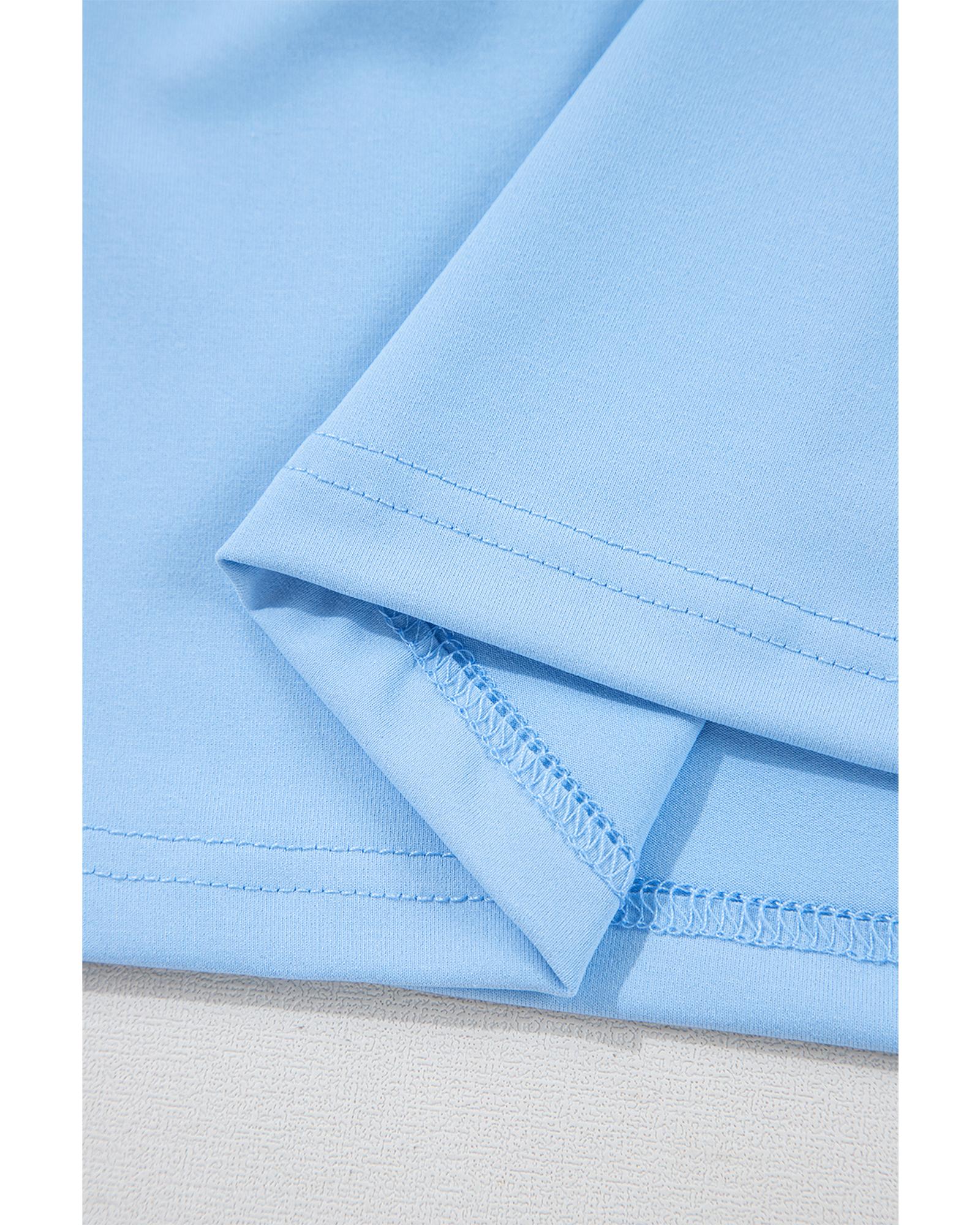 Beau Blue Floral Mesh Puff Sleeve Crew Neck Top – L
