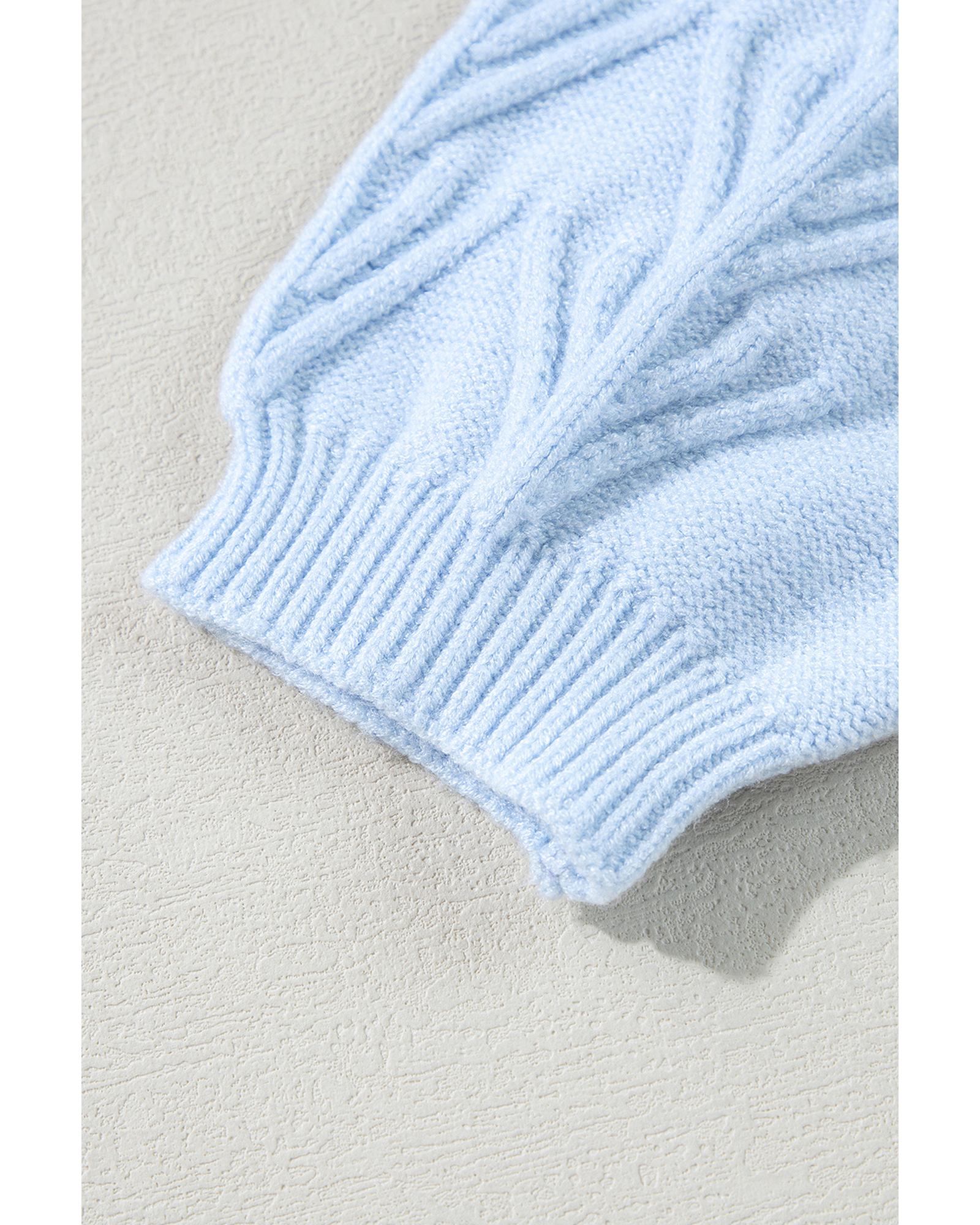 Beau Blue Flower Detail Knitted Notched Neck Sweater – L