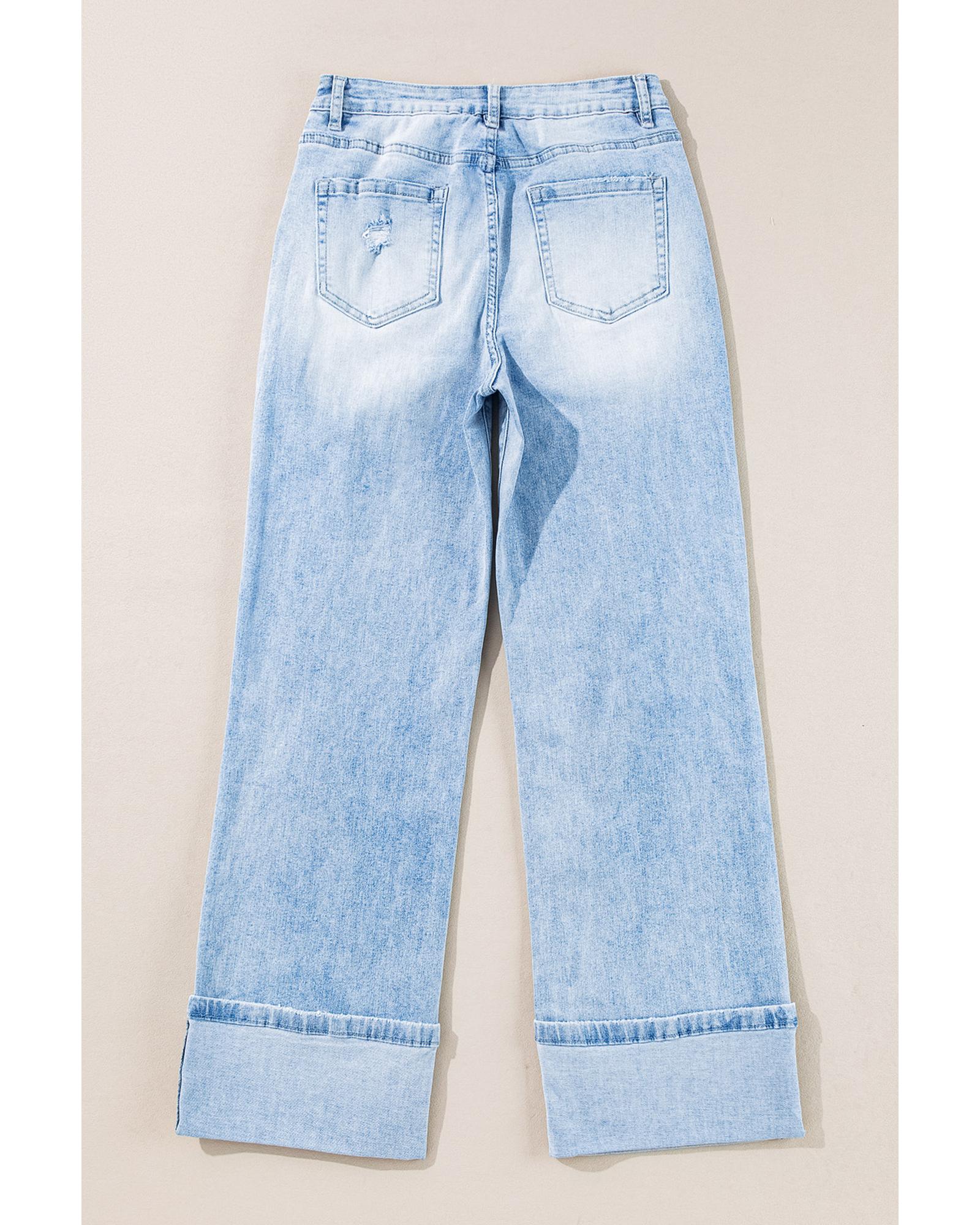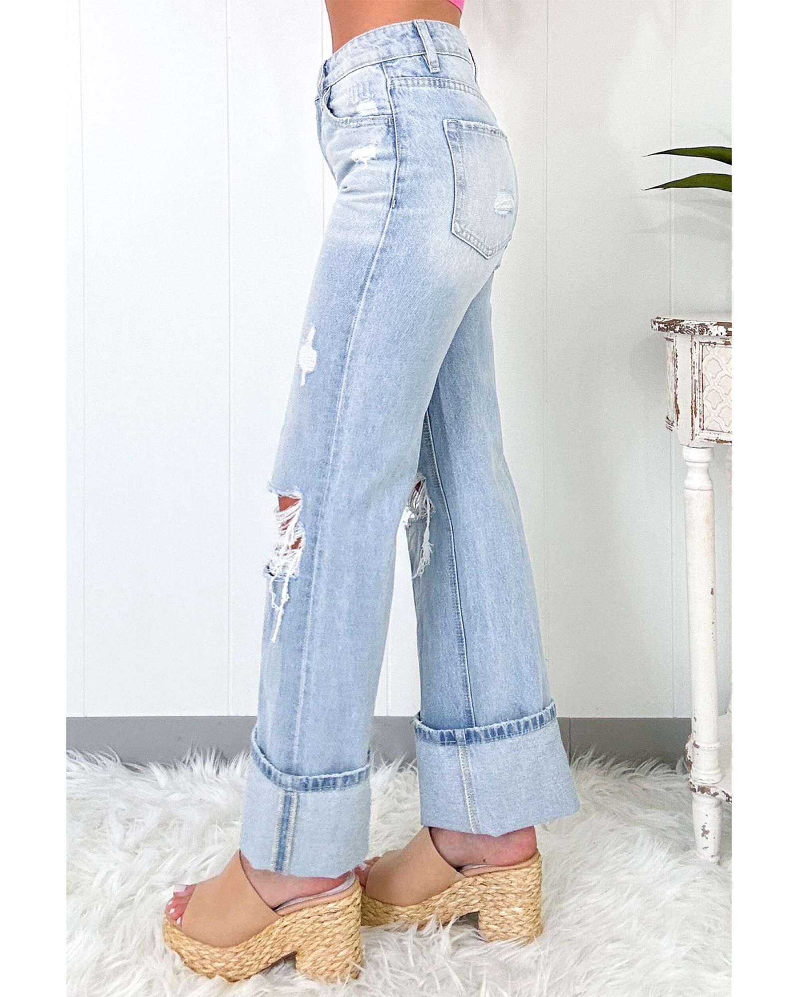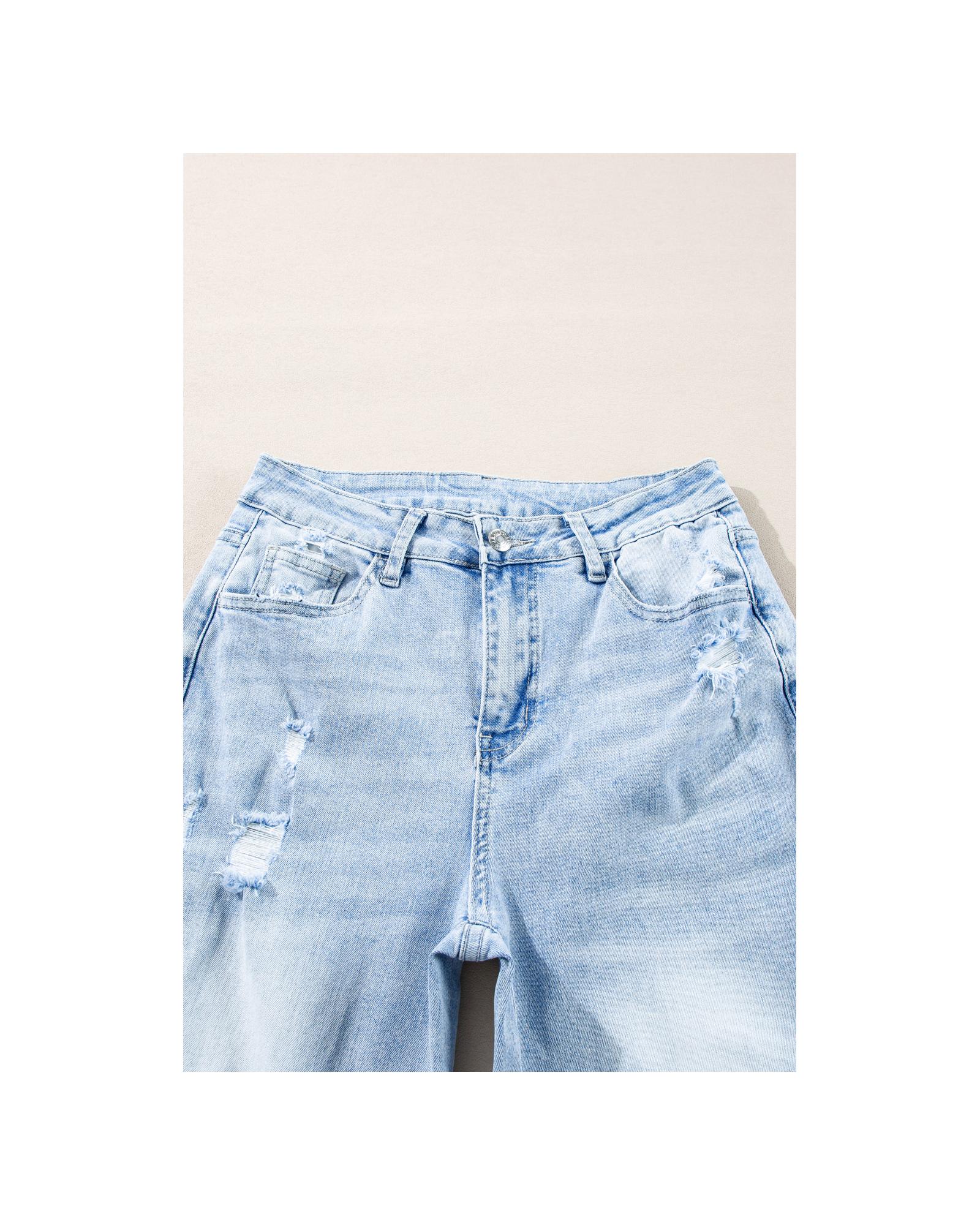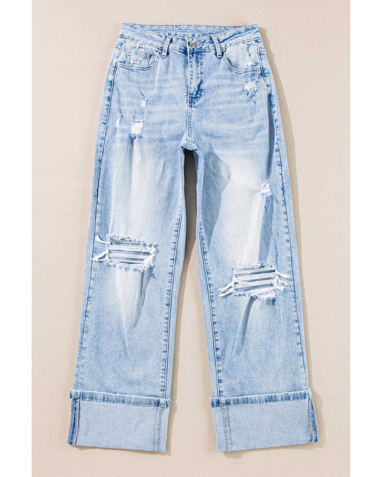 - Light wash distressed jeans
