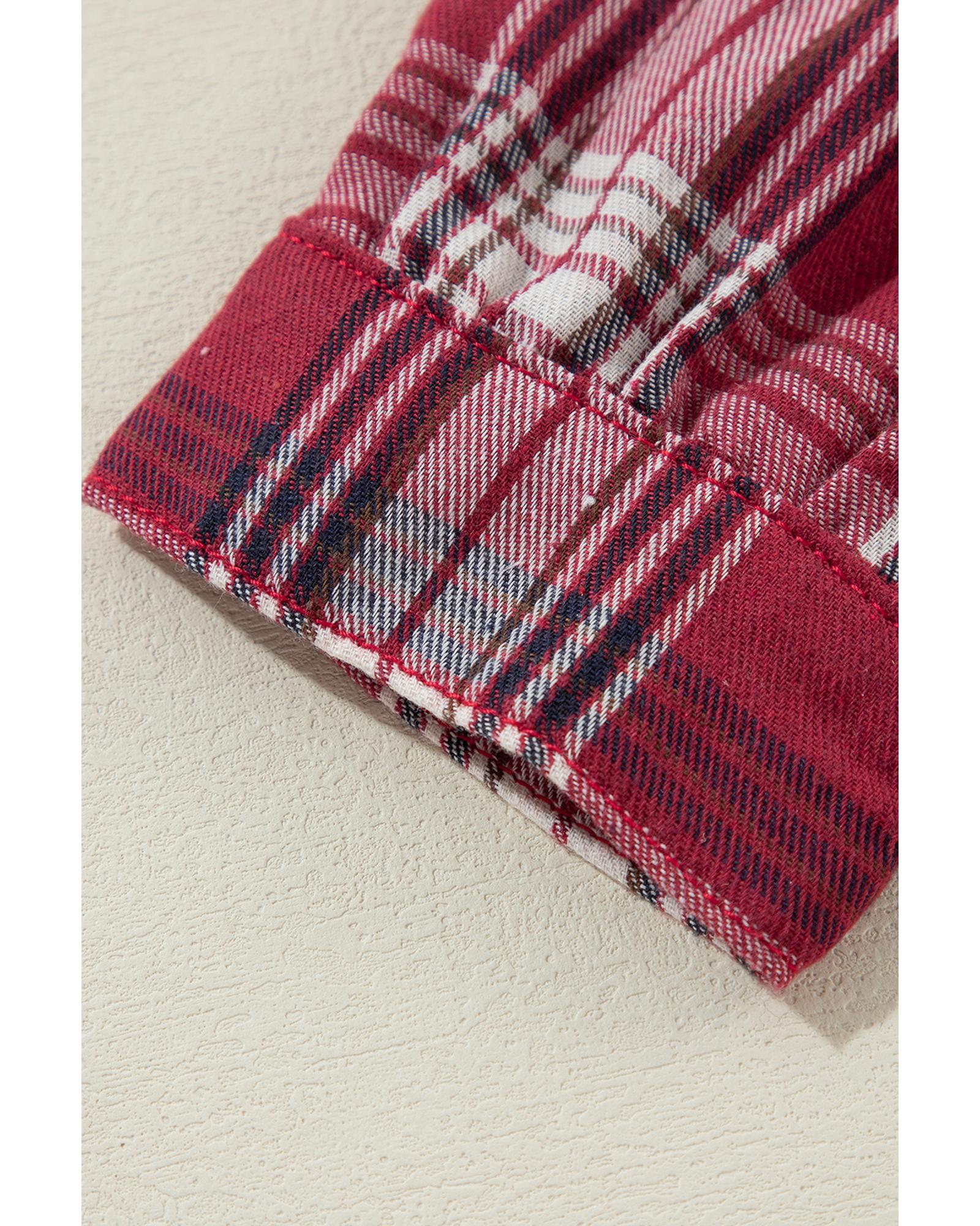 Black Plaid Sleeve Frayed Hem Hooded Denim Jacket - L