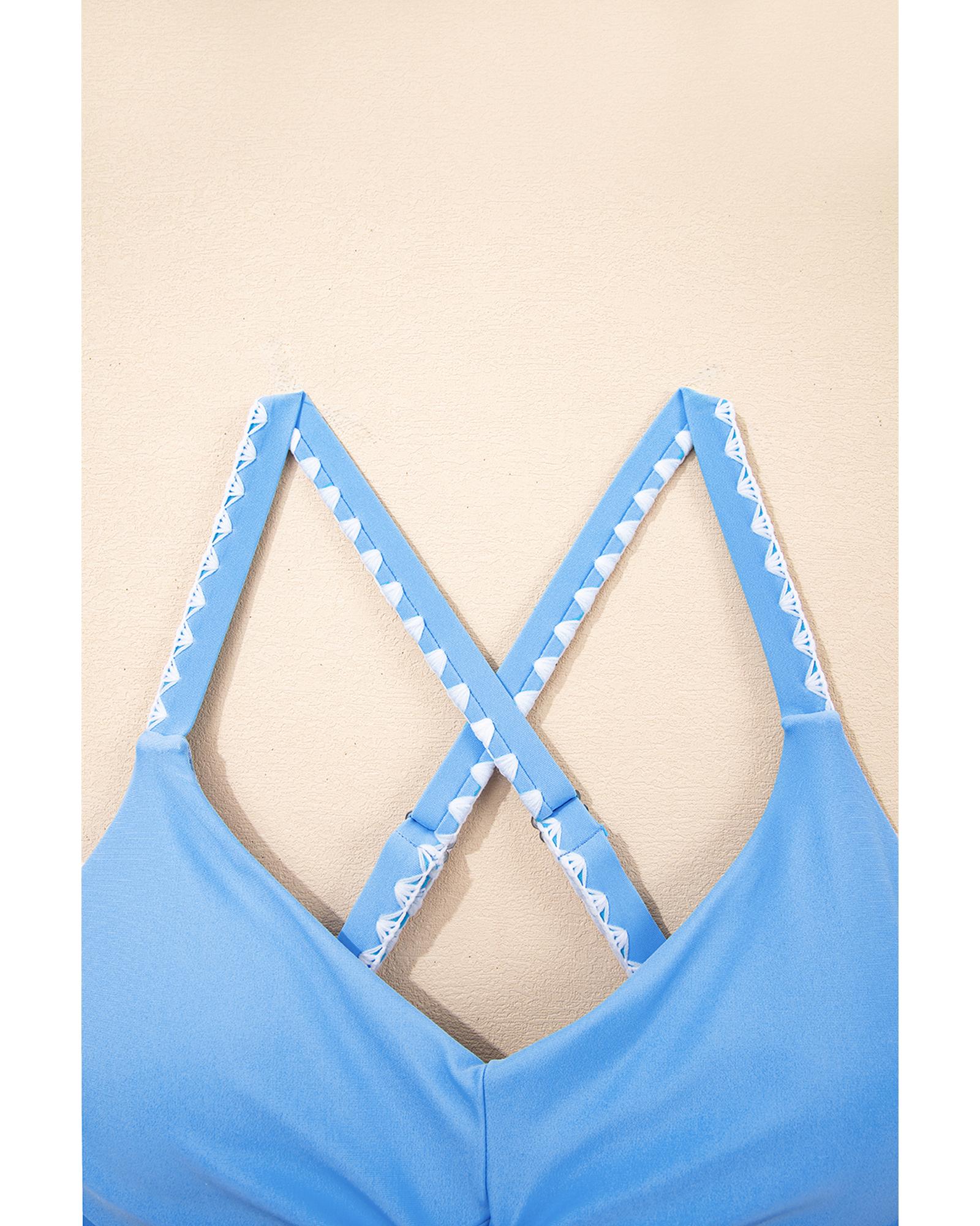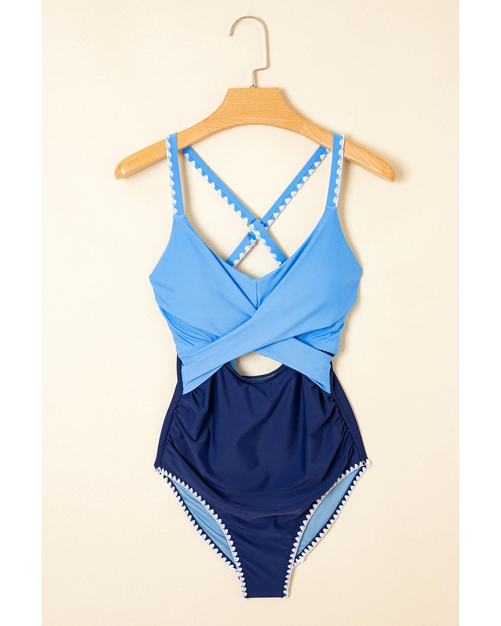 Beau Blue Ric Rac Trim Contrasted Patchwork Cutout One Piece Swimsuit – M