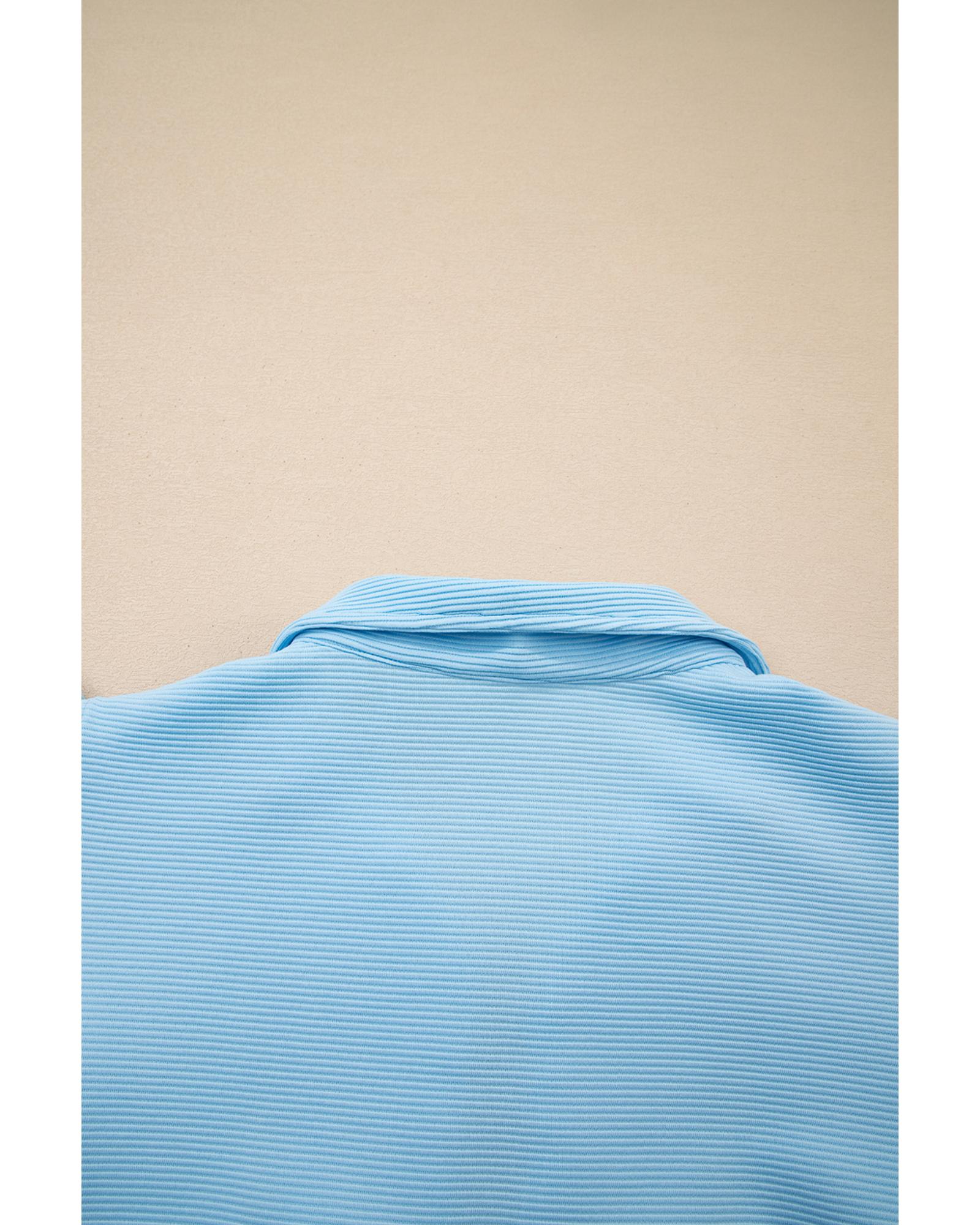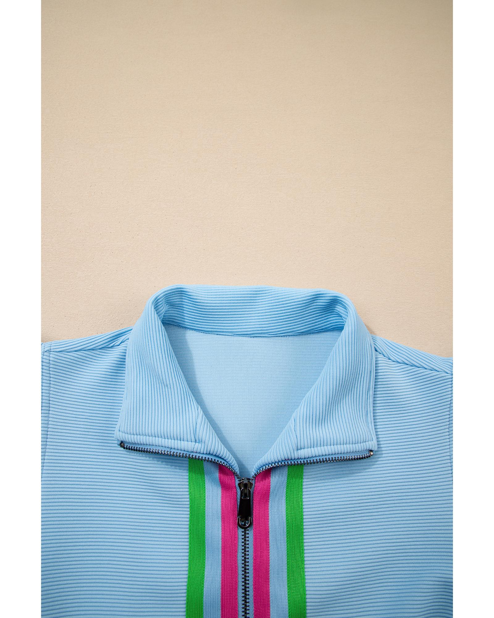 Beau Blue Striped Detail Flutter Sleeve Zipped Collar Short Set – S