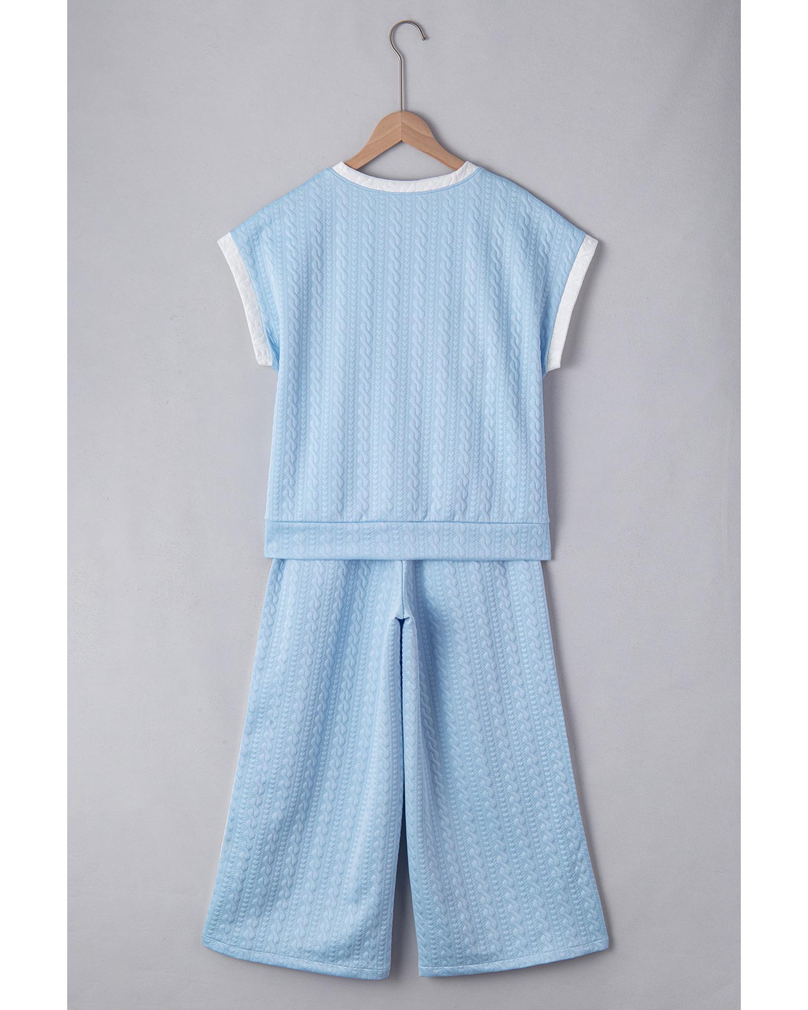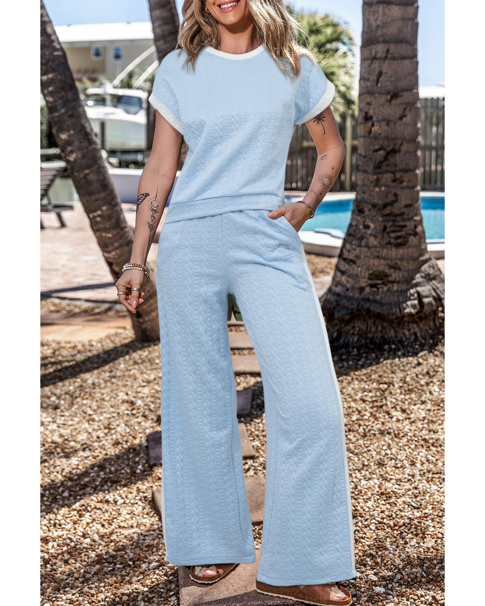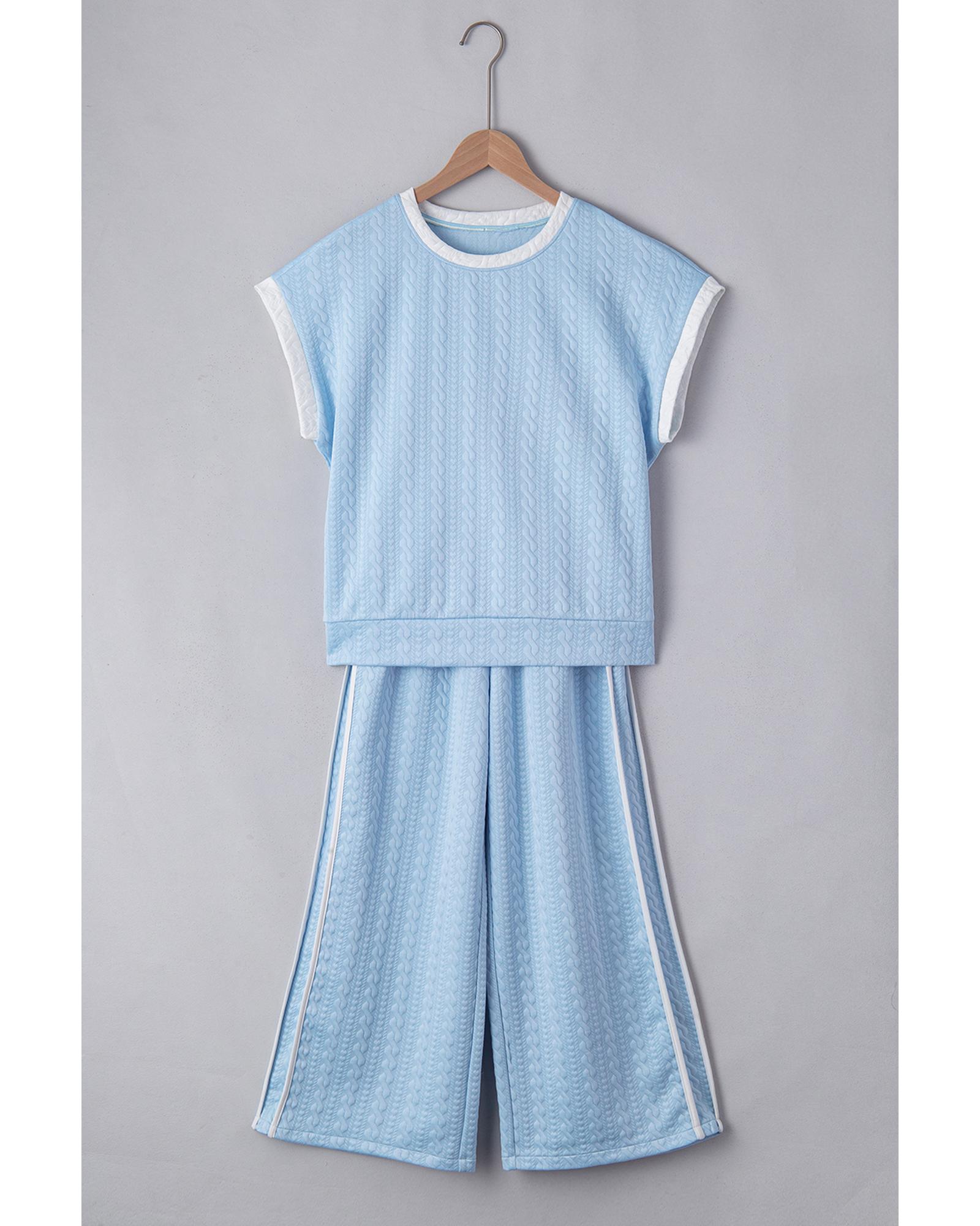 Beau Blue Textured Colorblock Edge Tank Top High Waist Pants Set - S