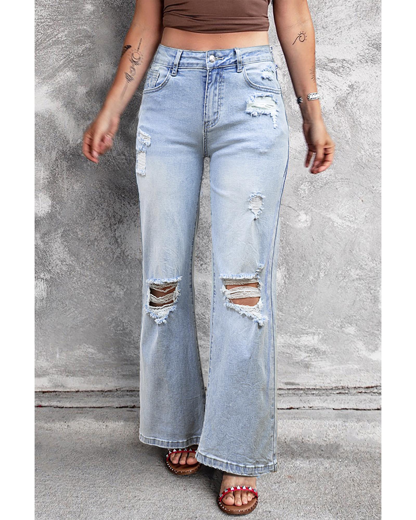 Beau Blue Vintage Light Wash Distressed Flare Jeans – 6 US