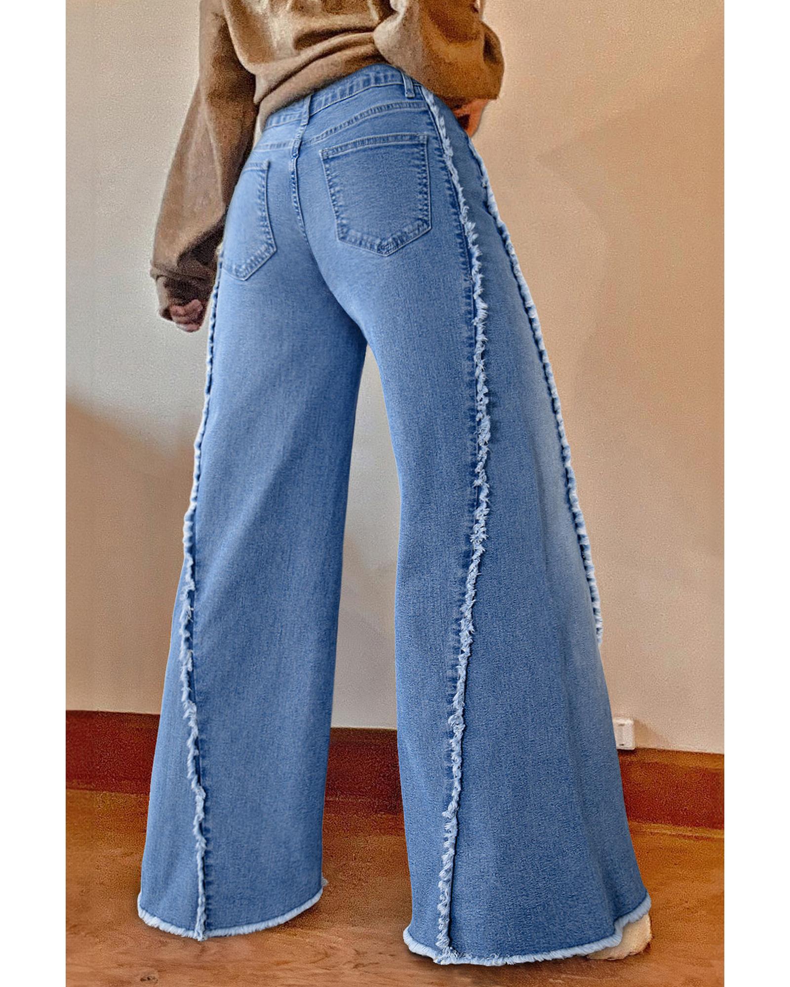 Beau Blue Vintage Stitching Raw Hem Flared Jeans – 12 US