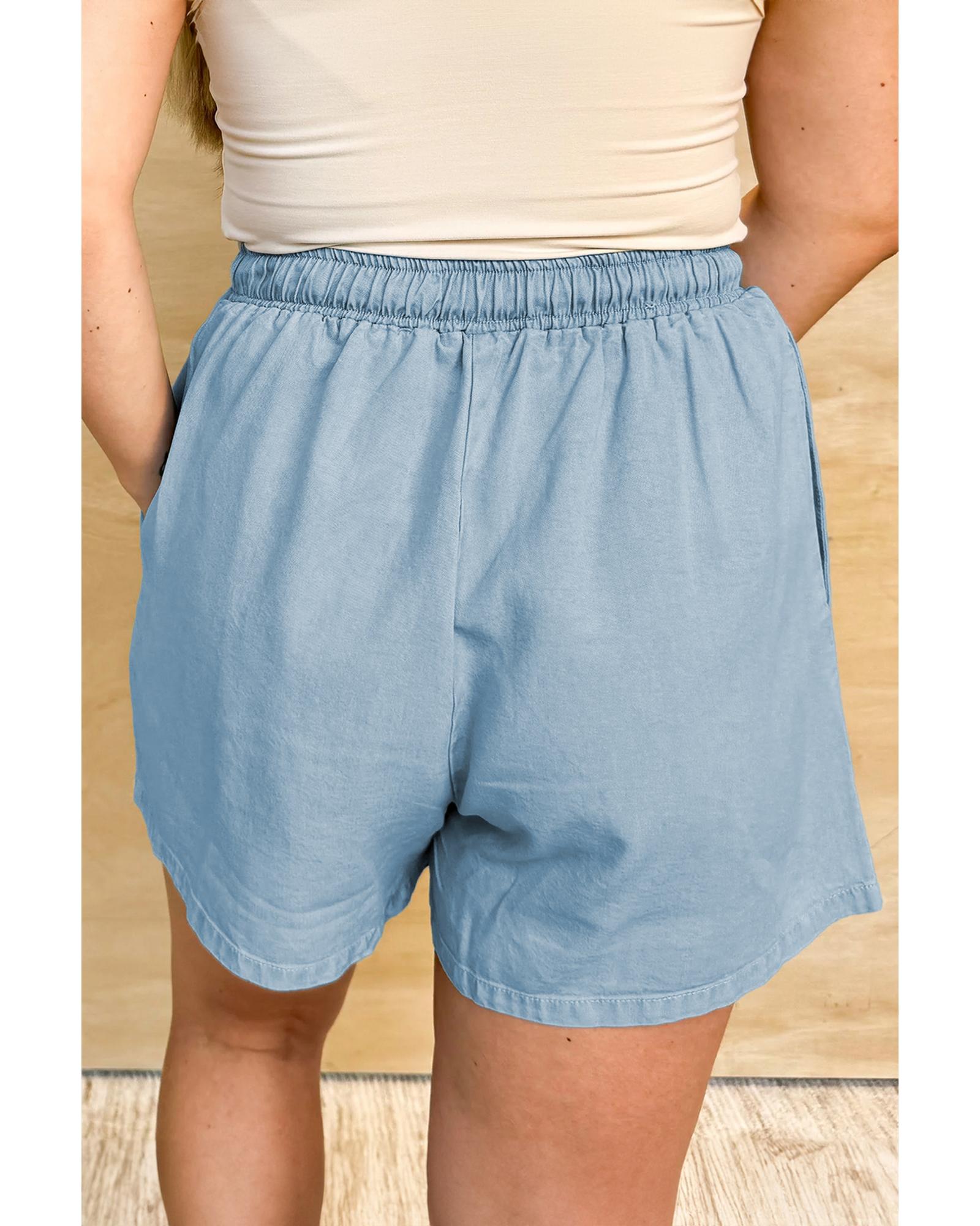 Beau Blue Washed Chambray Drawstring Elastic Waist Plus Size Shorts – 4X