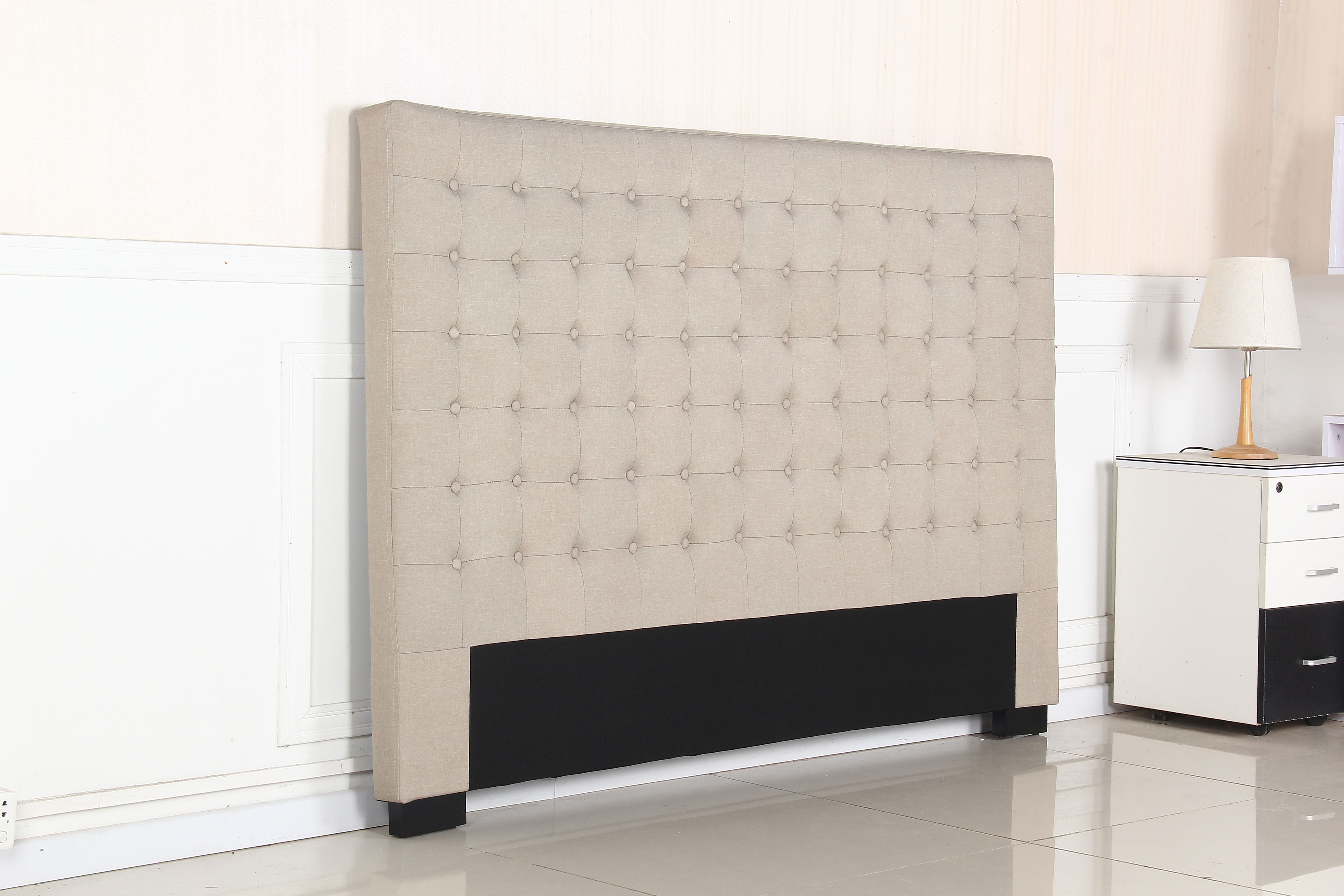Bed Head King Beige Headboard Upholstery Fabric Tufted Buttons