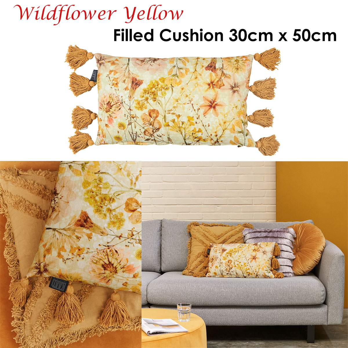 This unique decor Wildflower Yellow Luxury Filled Cushion 30 x 50 cm by Bedding House adds a chill vibe to your room. It features a gorgeous fringe style in warm colour tones of cream, pink, yellow, orange, brown, black, burgundy, and red that surely you will in love more with your space. The cushion is made from 100% Cotton fabric and Polyester filling with easy care properties and long lasting quality.