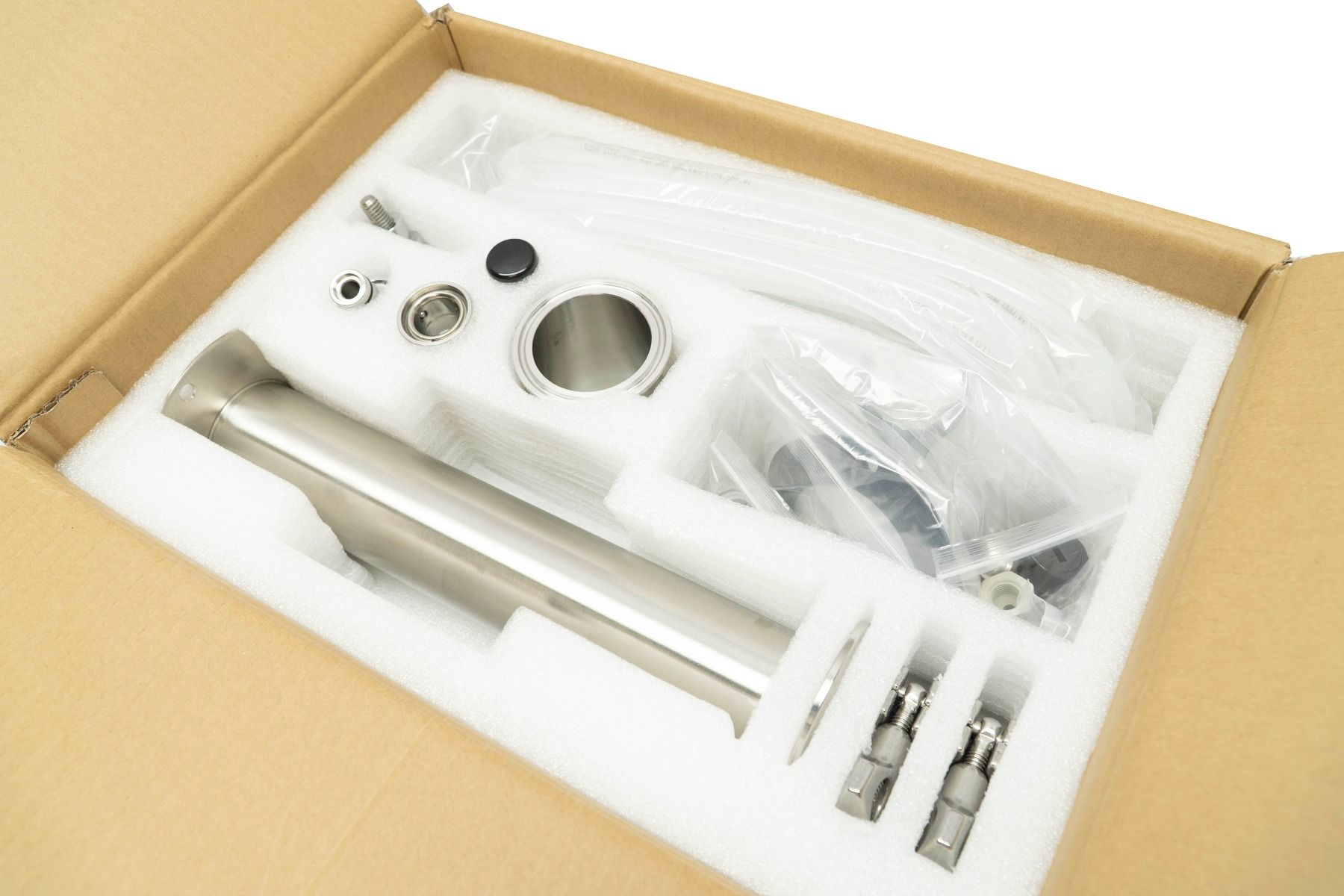 Each Keg King Modular Font is constructed from 304 Stainless Steel and manufactured to be assembled with 2 inch tri-clover fittings.