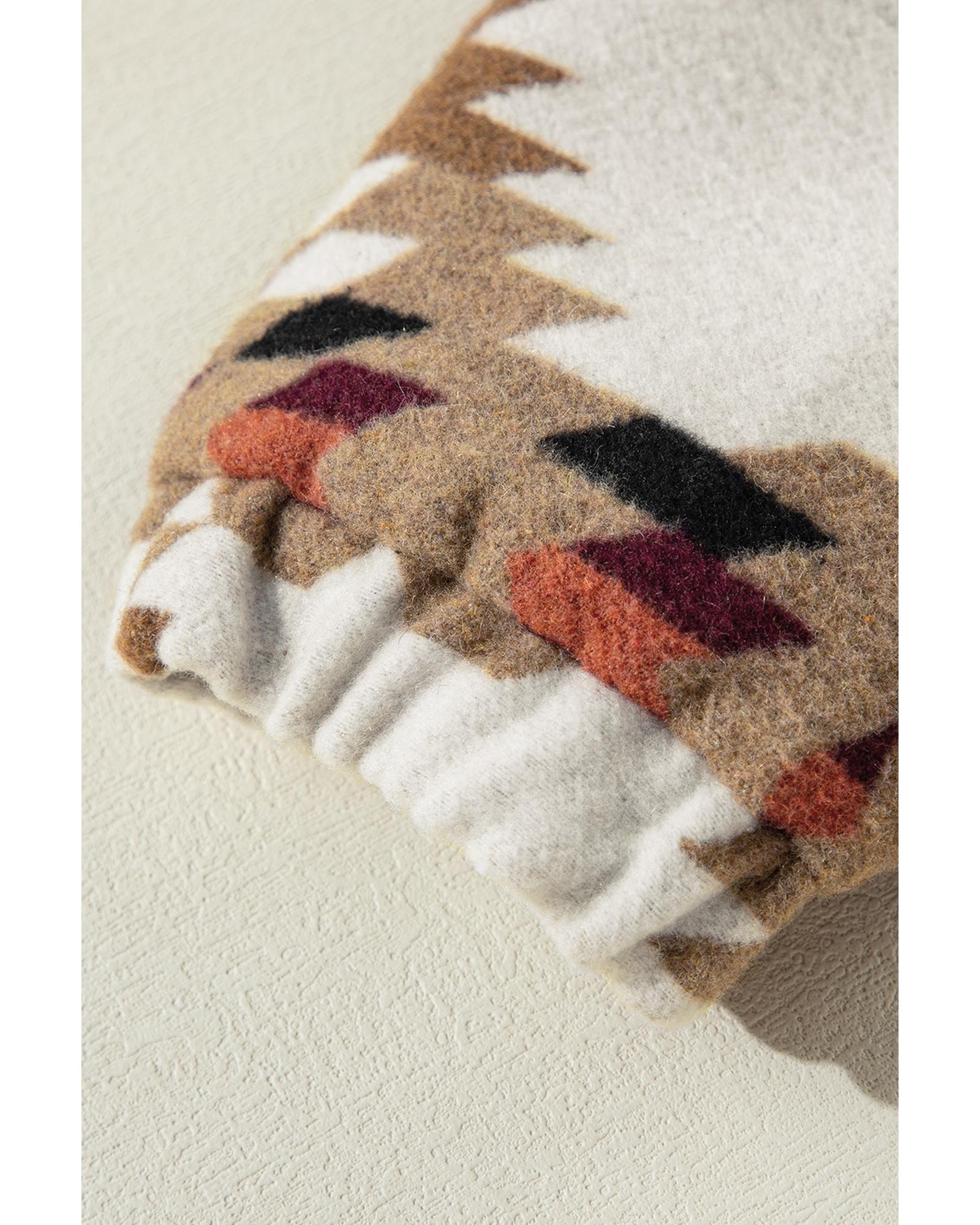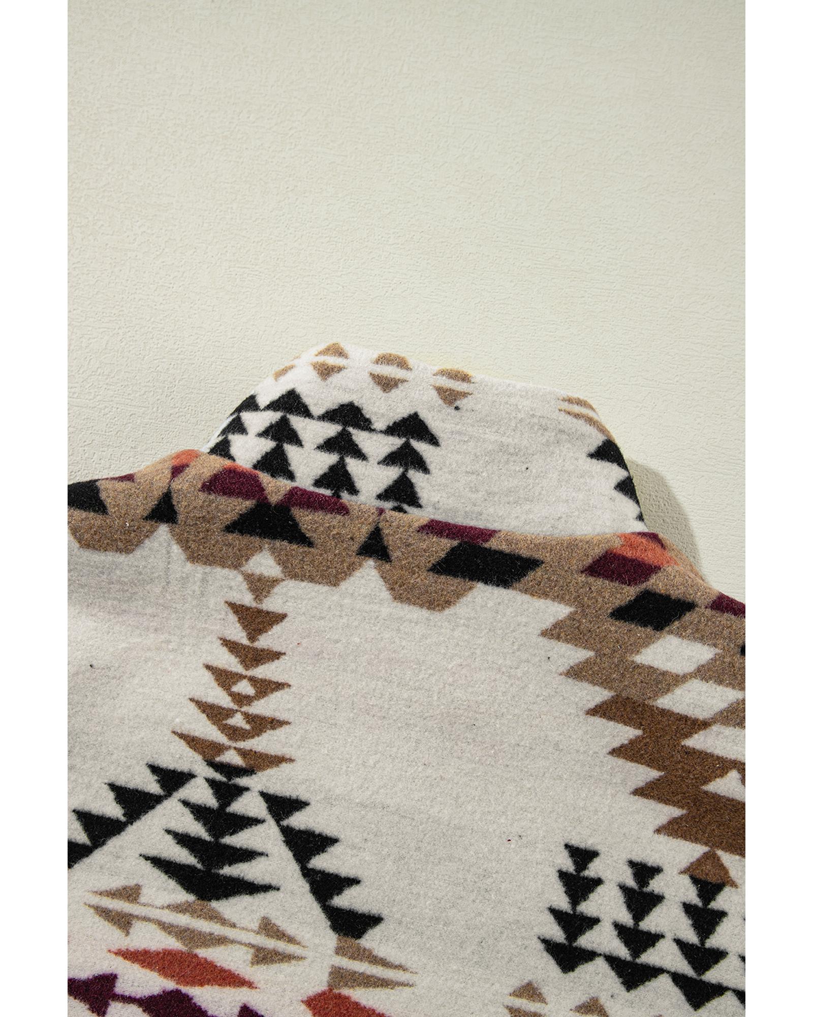 Beige Aztec Printed Stand Neck Zip Up Jacket – M