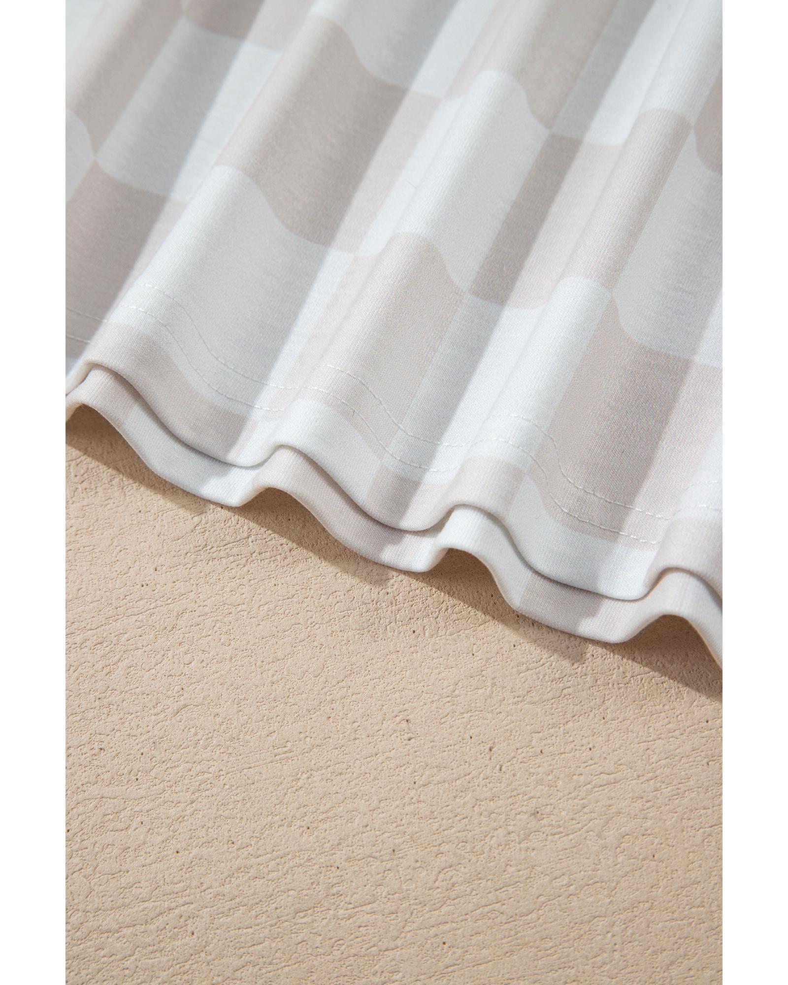 Beige Checkered V Neck Tee Drawstring Shorts Lounge Set – M