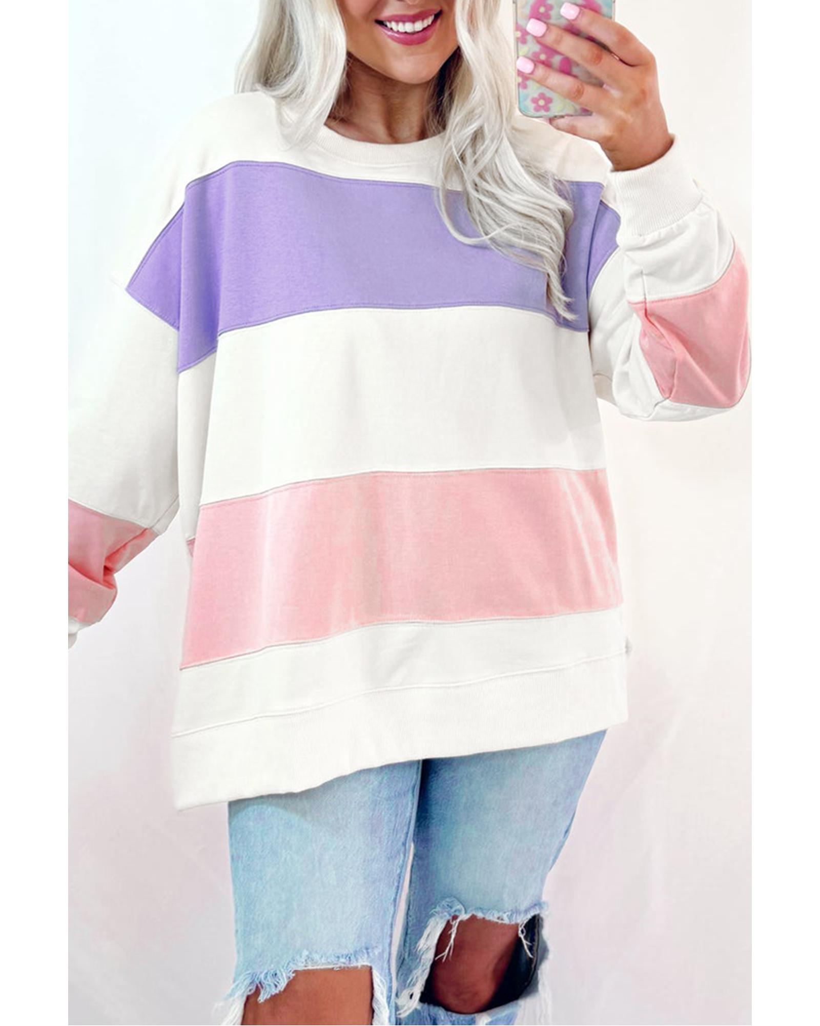 - Beige Colorblock Patchwork Drop Shoulder Crewneck Sweatshirt